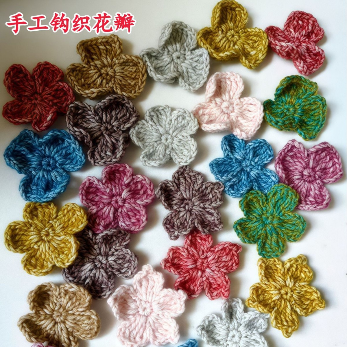 编织成品花朵手工毛线钩织花瓣 diy毛线花服装辅料配饰小花批发
