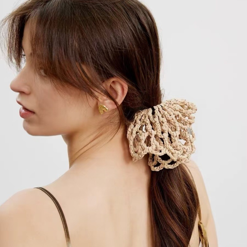 手織りラフィアヘアゴム、中空デザイン、ハイエンドニッチ、多用途ヘアゴム、かぎ針編みヘッドバンド、ヘアアクセサリー