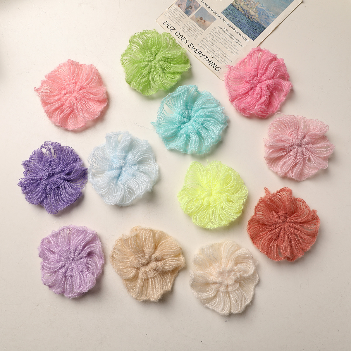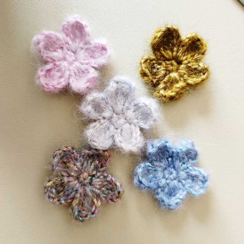 卸売手作り diy かぎ針編み花びらモヘア糸手かぎ針編み花衣類アクセサリーヘアアクセサリー材料