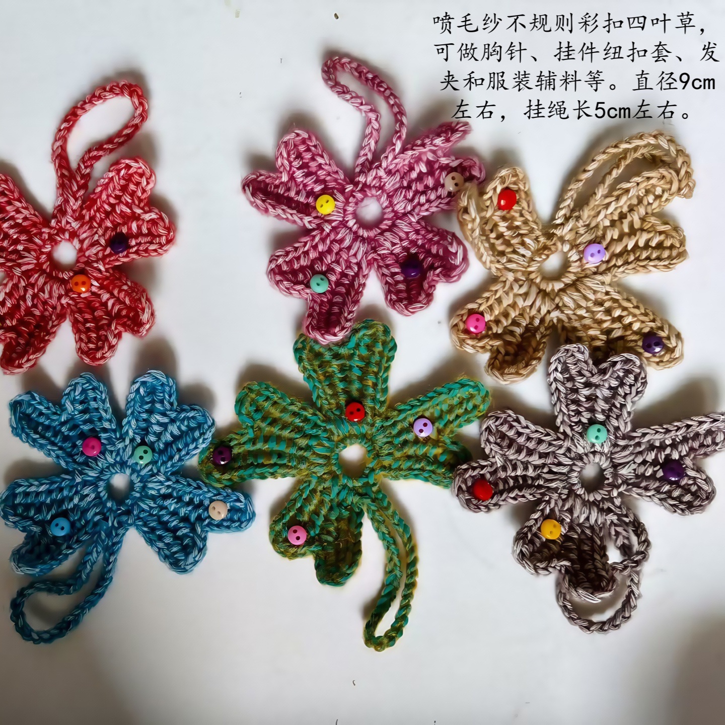 手工编织四叶草花瓣毛线钩织花片diy服装辅料配件胸针挂件纽扣套