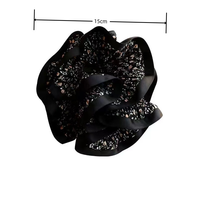 气质法式优雅碎花黑色双层大肠发圈女扎头发绳马尾头绳皮筋2025年