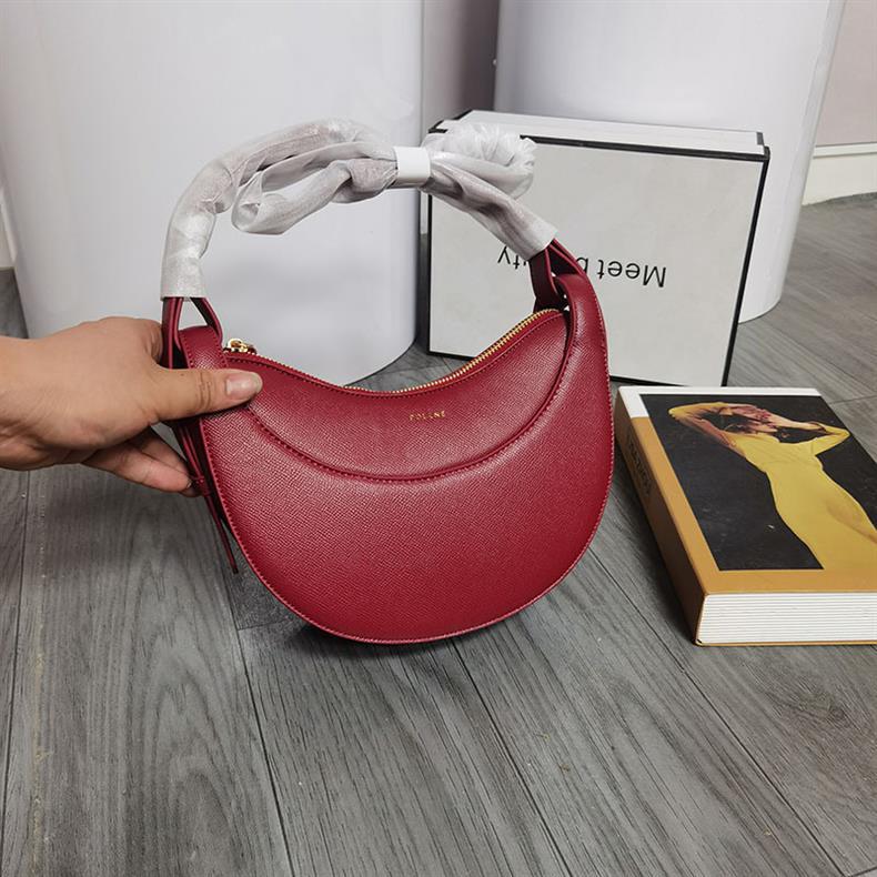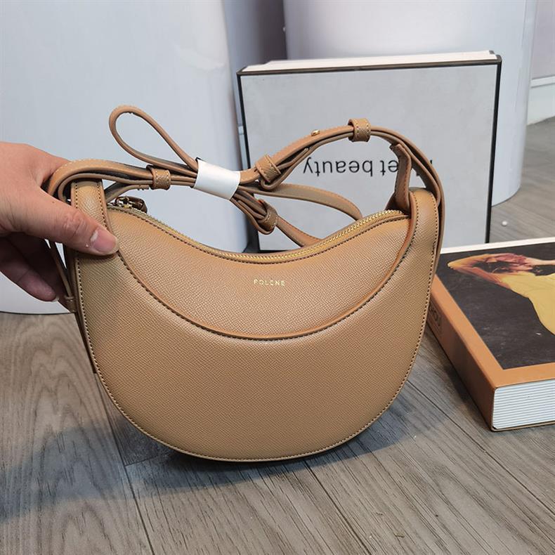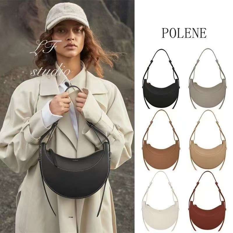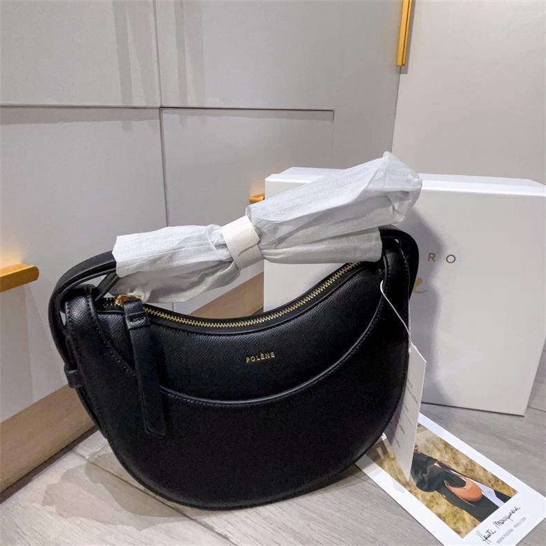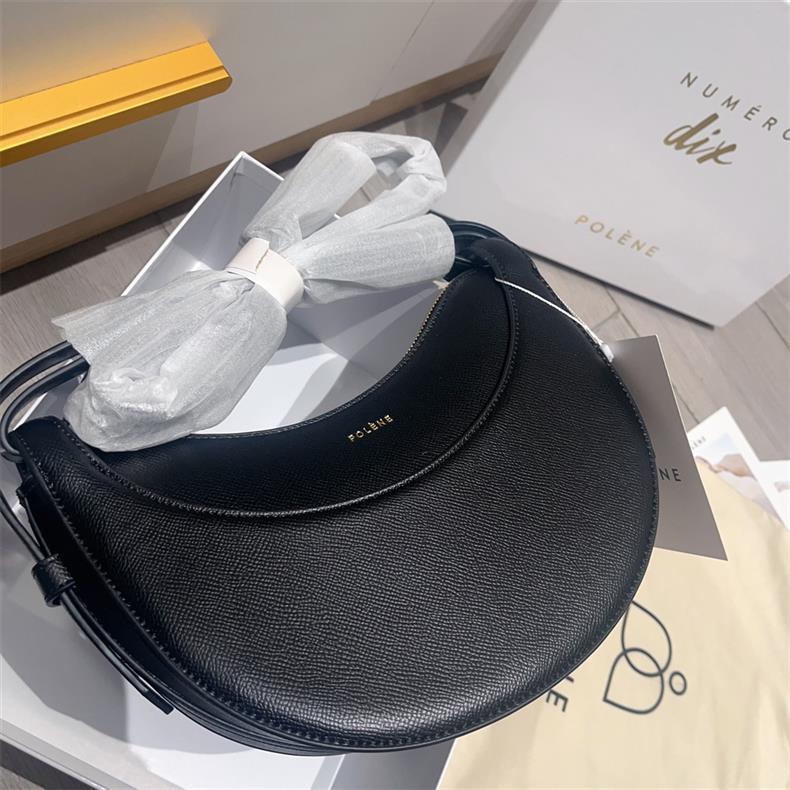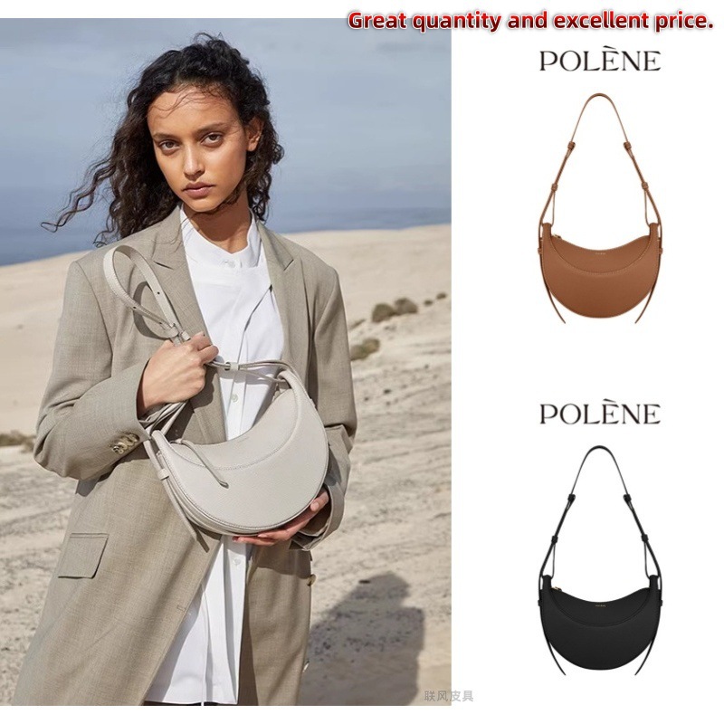 クロスボーダーで人気のPOLENE、フランスのニッチデザイン、シングルショルダー/クロスボディバッグ、ポレーヌの三日月型バッグ、本革レディースバッグ、脇に抱えるバッグ