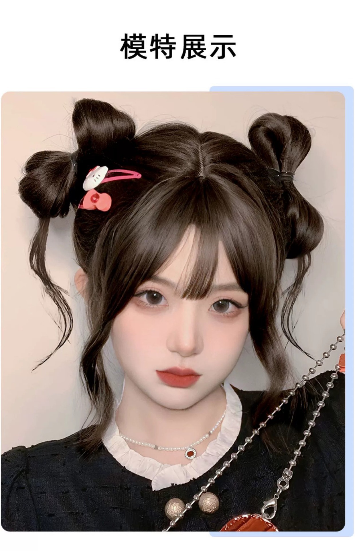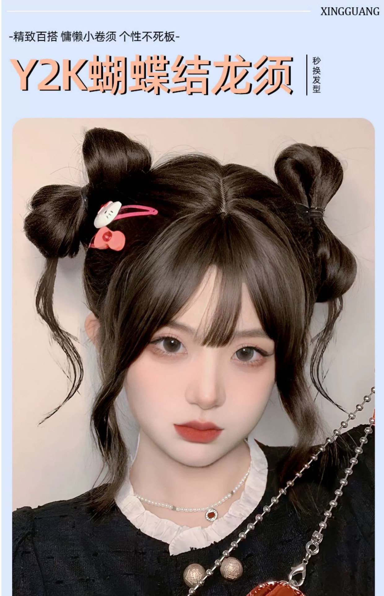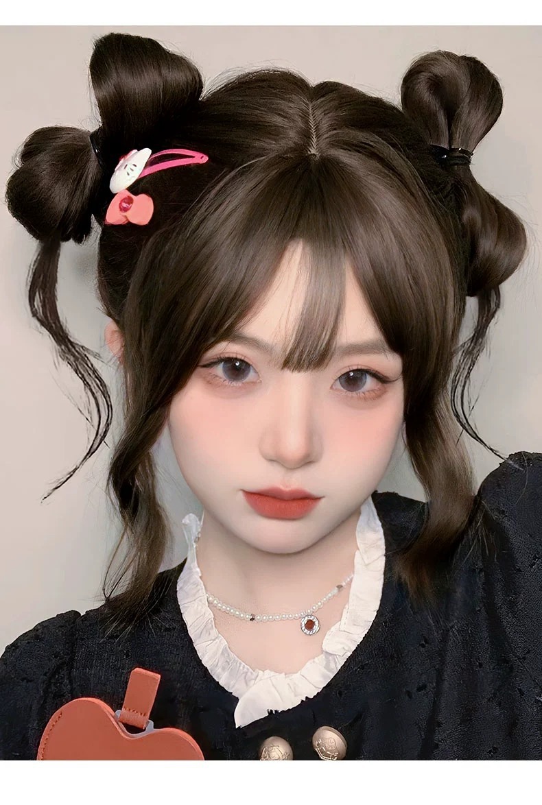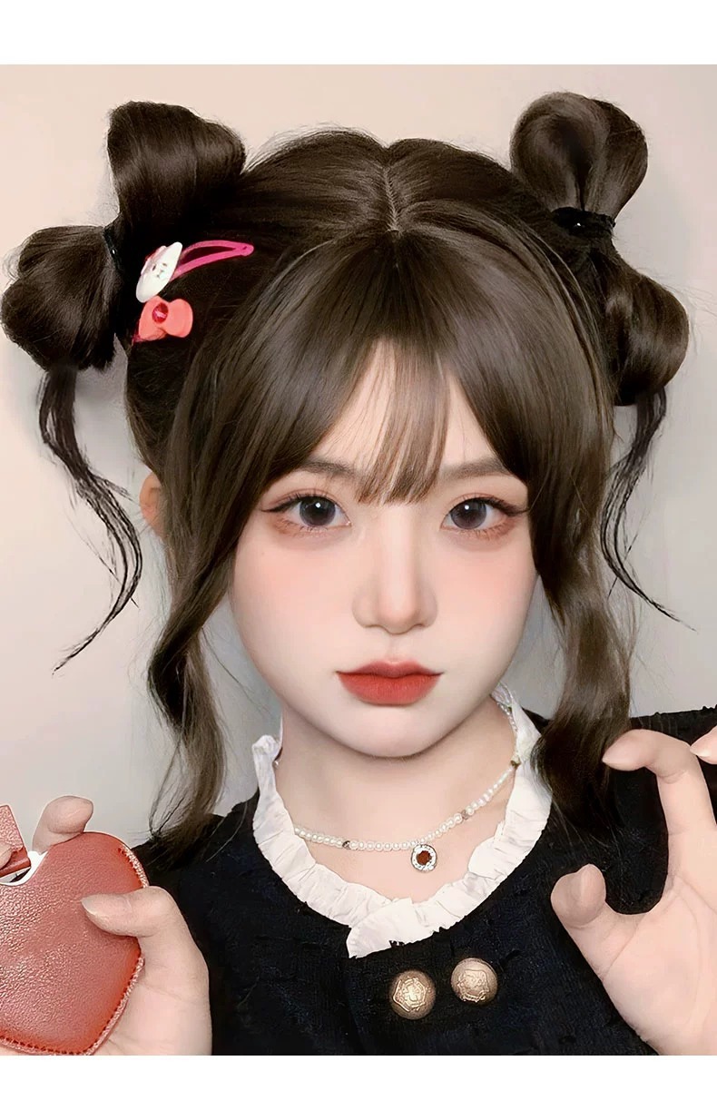 竜須双団子の頭のかつらは髪をシミュレーションします。
