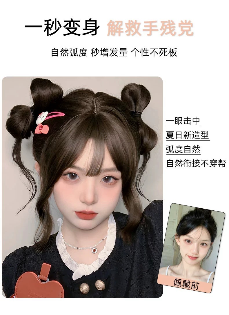 ボールヘッドウィッグリングストレートヘアリングふわふわナチュラルレイジーヘアアクセサリーポニーテールロングストレートヘア