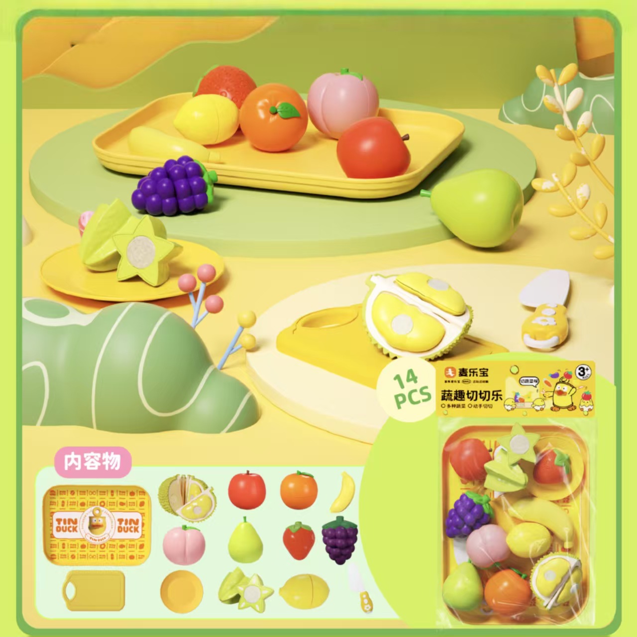 麦楽宝のままごとのおもちゃの子供の果物と野菜は切ります。