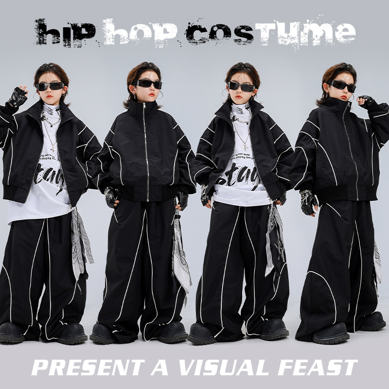 儿童街舞潮服男童嘻哈黑色舞蹈服套装hiphop帅气男孩元旦演出服男