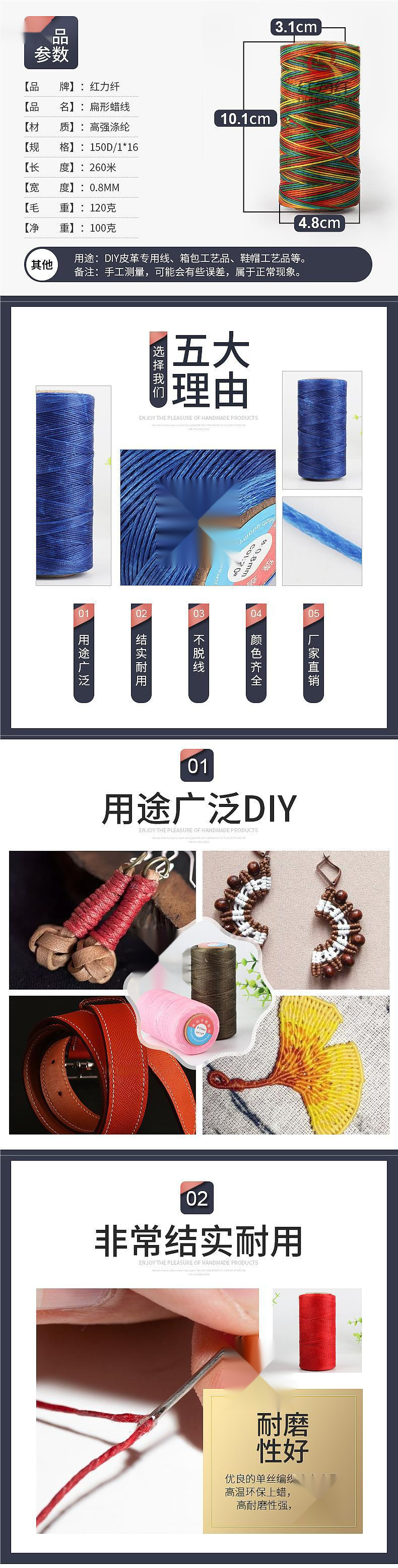 150D レザー手縫いワックス糸手作り DIY レザー糸ポリエステル糸 0.8 ミリメートルフラットワックス糸 260m