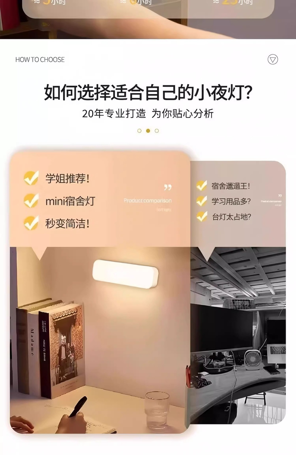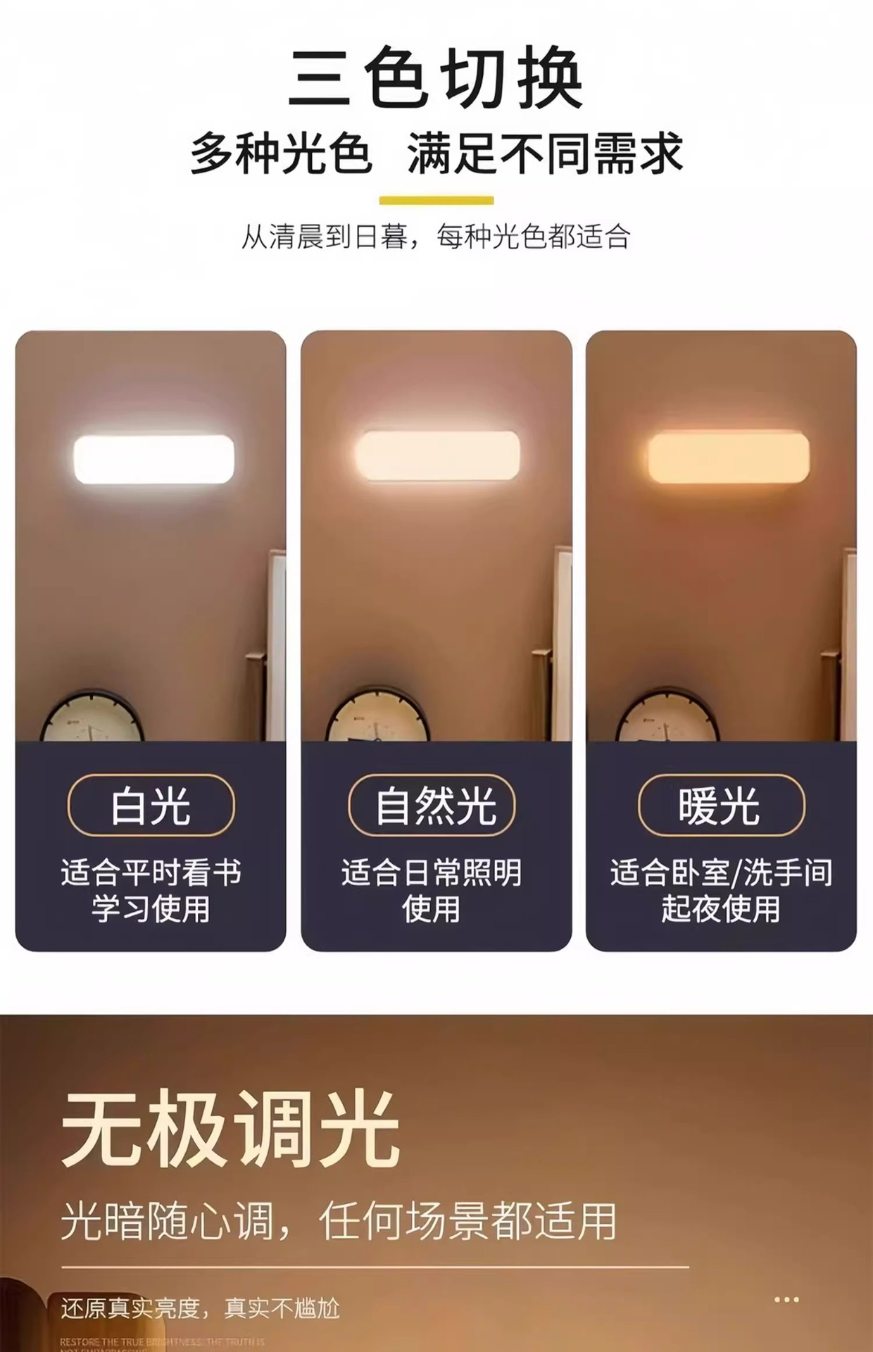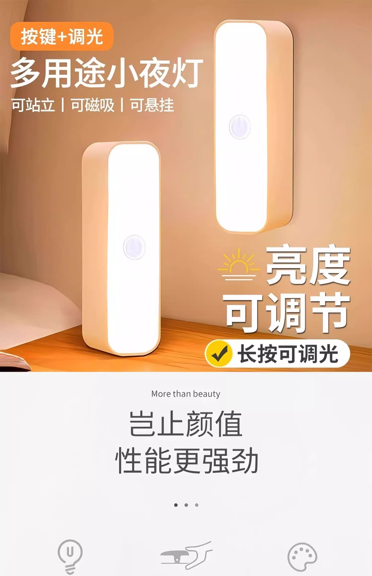 宿舍创意磁吸充电小夜灯超长续航三色调节无线过道护眼按钮起夜灯