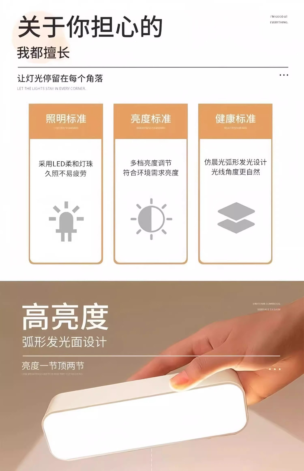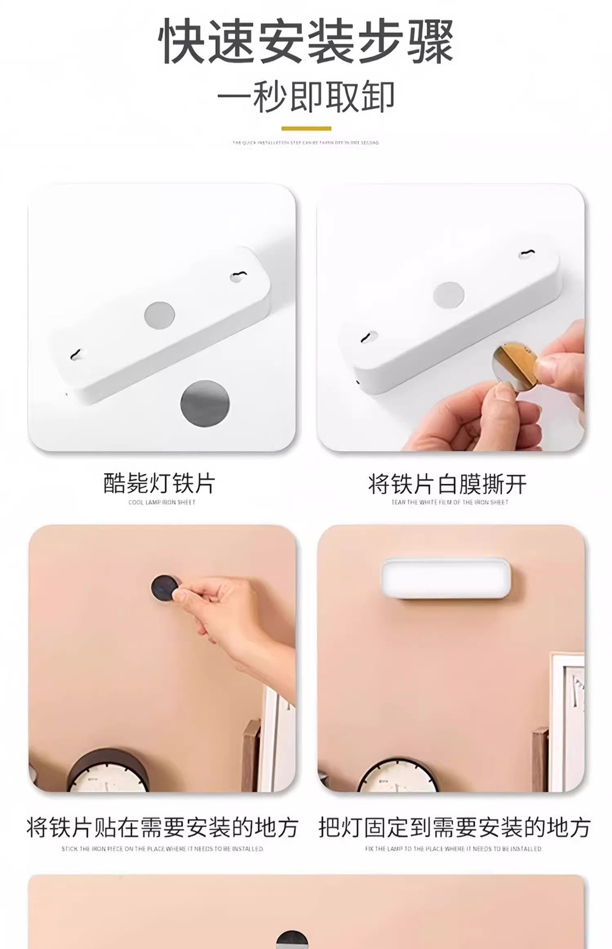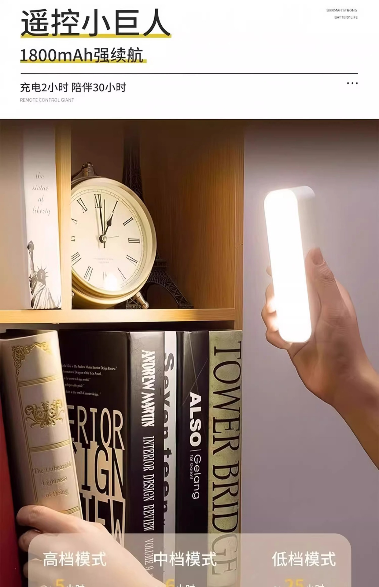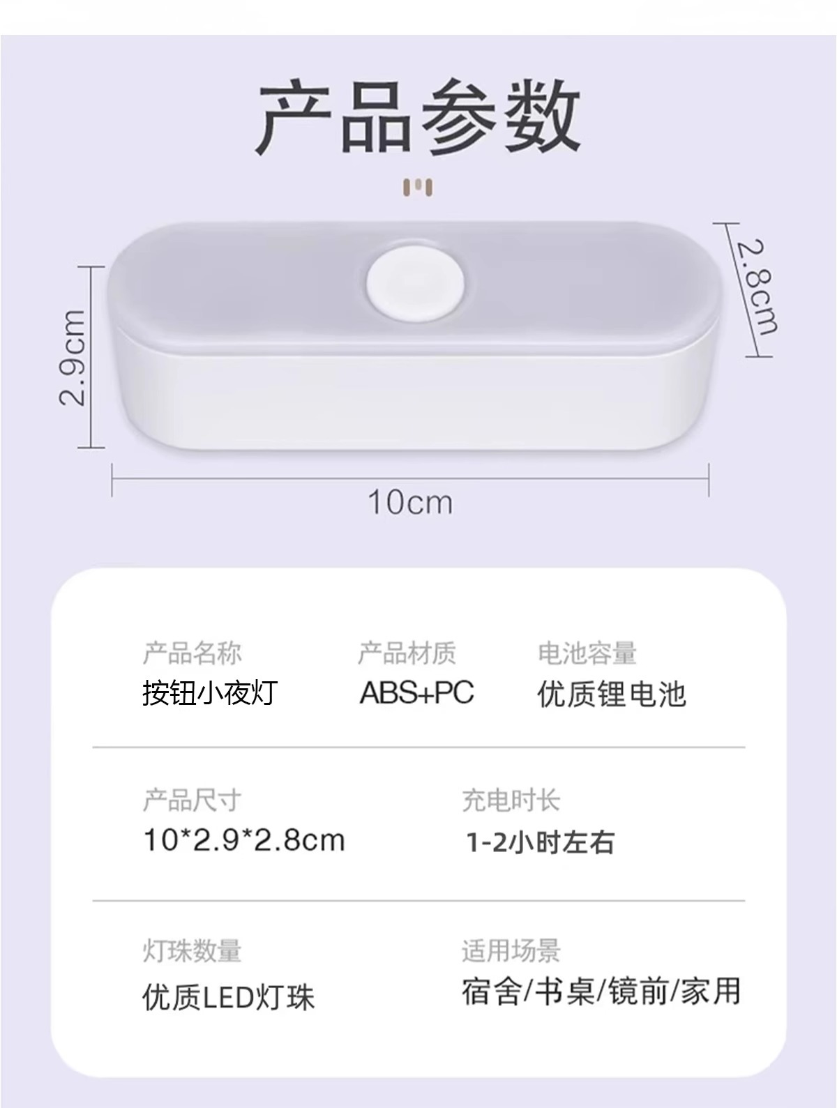 宿舍创意磁吸充电小夜灯超长续航三色调节无线过道护眼按钮起夜灯