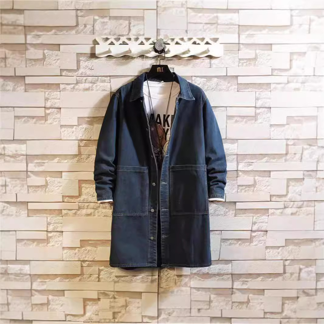 外国貿易2024春秋タイプの男性デニム風衣ジャケット韓国版ミディアムコート襟付き男性ビッグコート