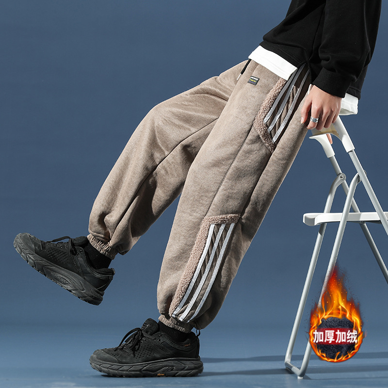 2023冬の男性は、ベルベットの子羊の毛を厚くしてゆるいトレンドのカジュアルパンツを厚くした