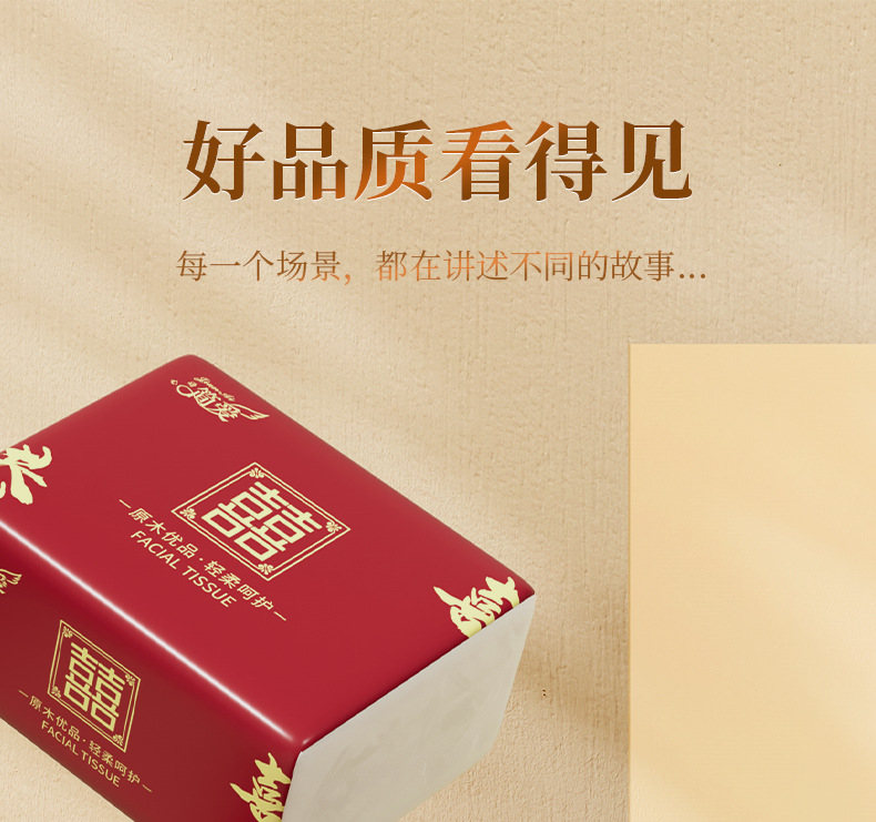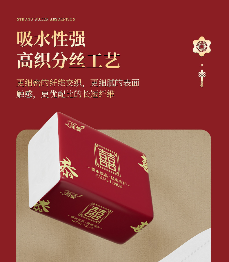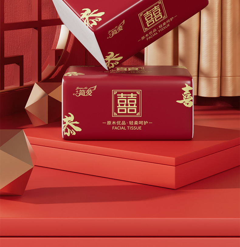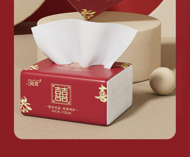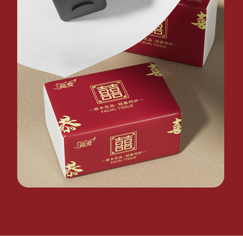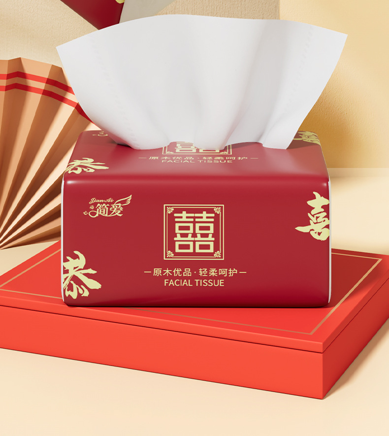 工場直販100包引き紙結婚ナプキン紙祝い事紙引き結婚祝い双喜ティッシュ80引き箱卸売り