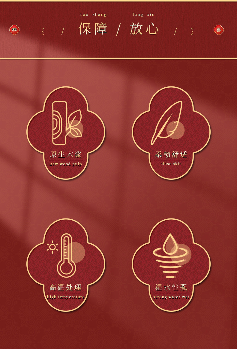 結婚式の披露宴専用のティッシュ赤い喜字ナプキン結婚式の酒席のティッシュ