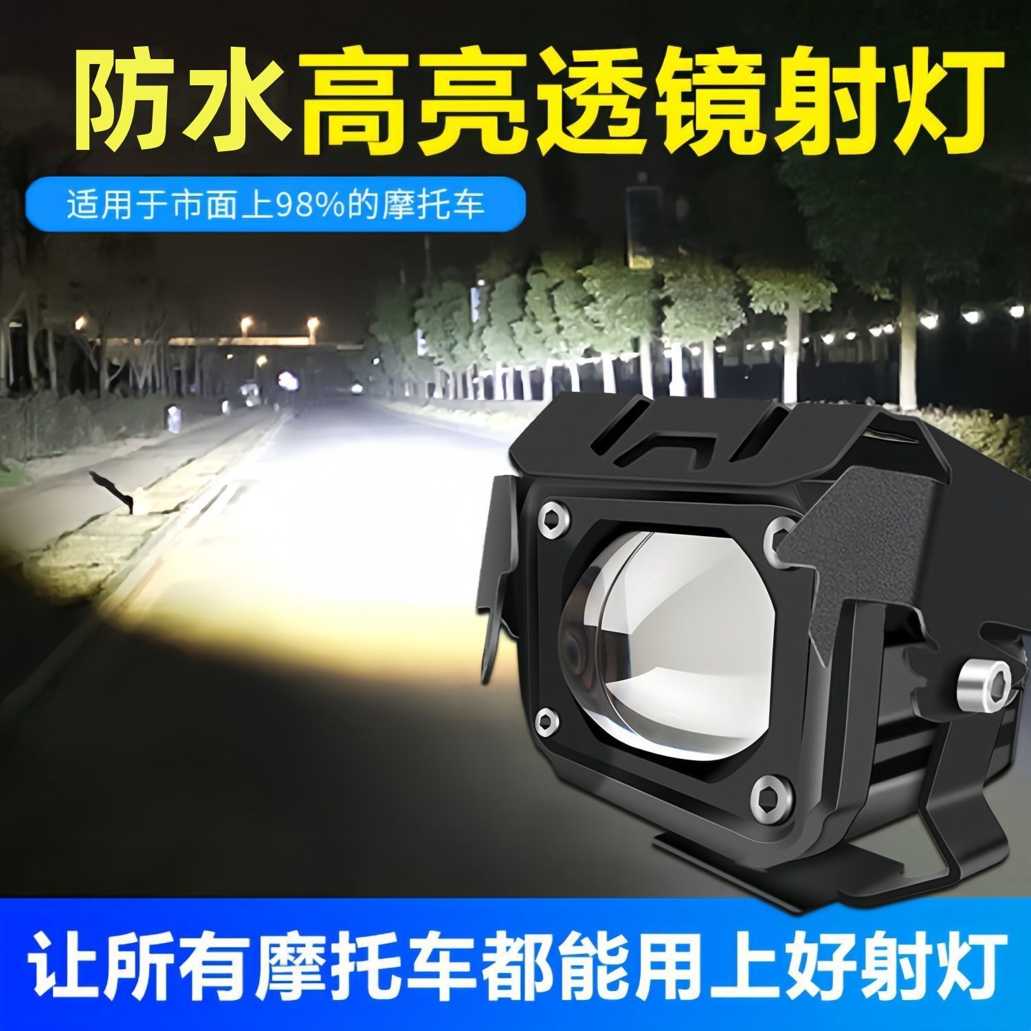 摩托车LED射灯电动车灯外置超亮强光电瓶三轮车12V改装铺路前大灯
