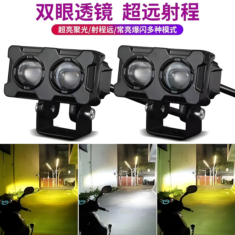 电动车射灯强光带透镜摩托车改装三眼四眼远近光铺路超亮聚光LED