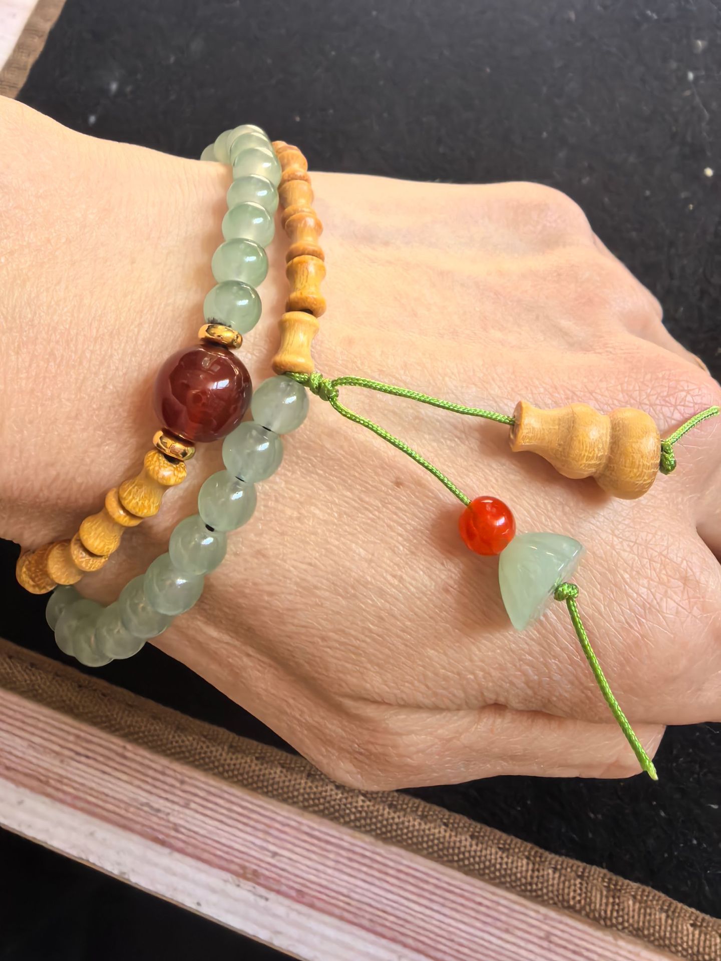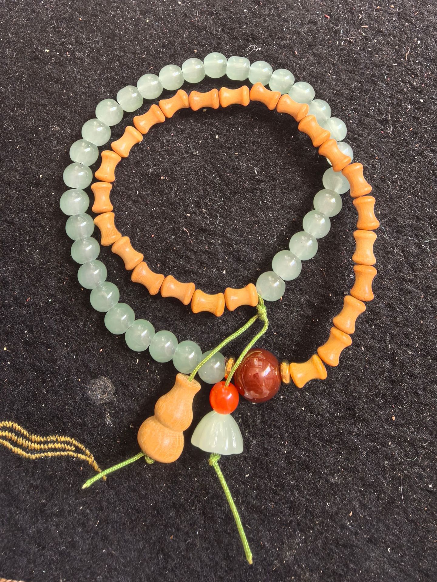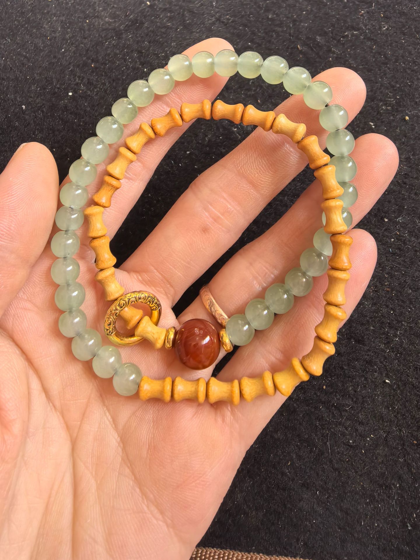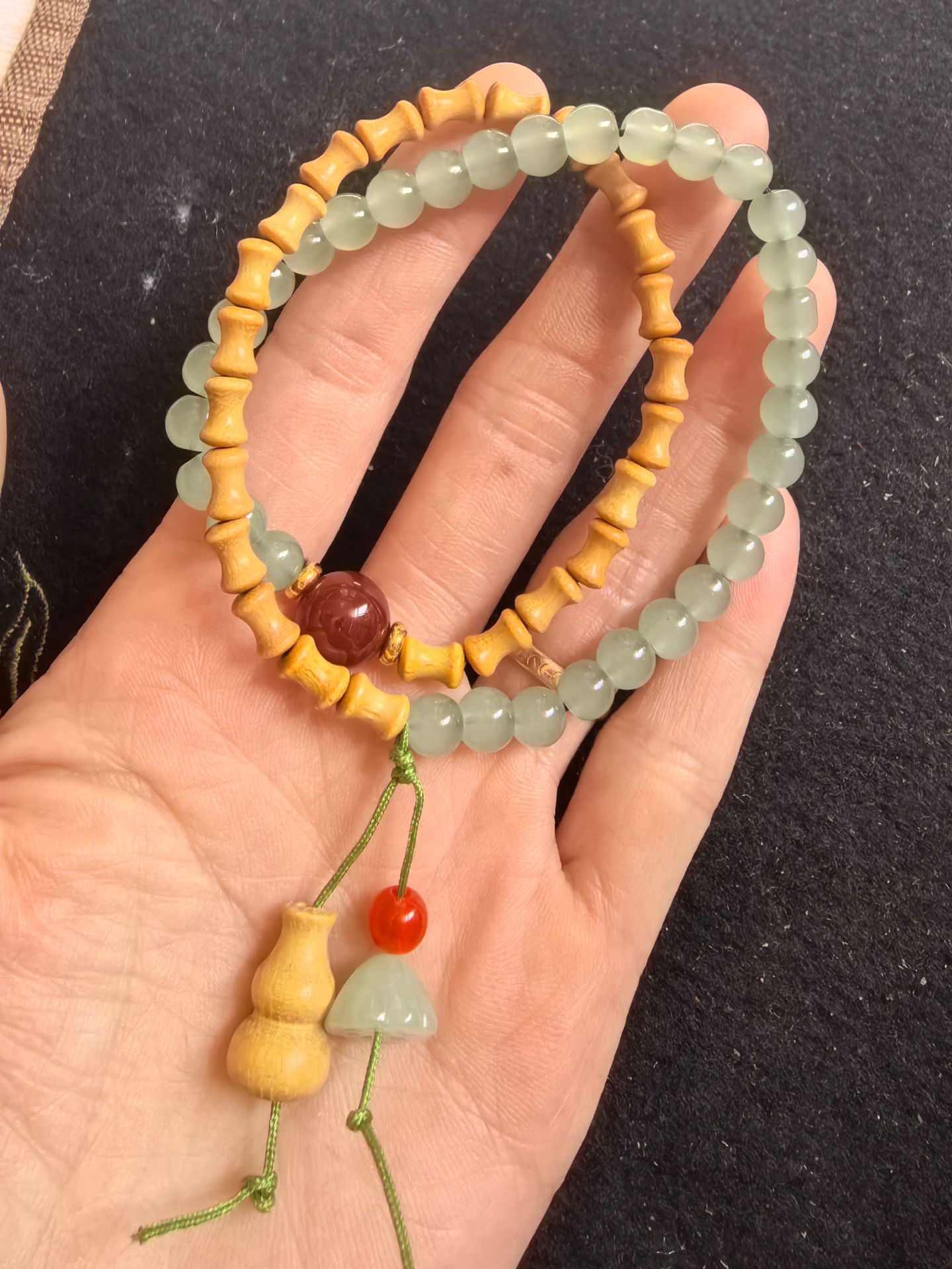 緑檀木手串竹節檀香木寿山石双輪手串ブレスレット節高昇女金文遊び数珠