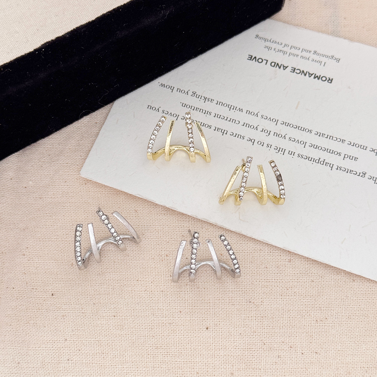 女性用のクロスボーダーの新しいパーソナライズされたダイヤモンドがちりばめられた4本爪イヤリング、シンプルでクールなスタイル、ニッチなハイエンドの気質イヤリング卸売