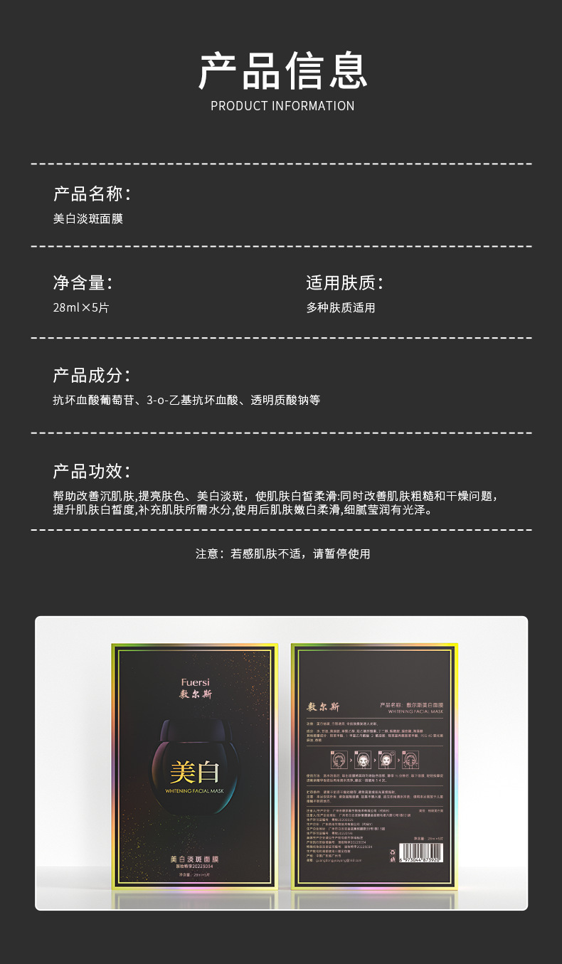 敷尔斯美白淡斑面膜白皙透亮水润滋润热卖秋冬贴面面膜厂家直供