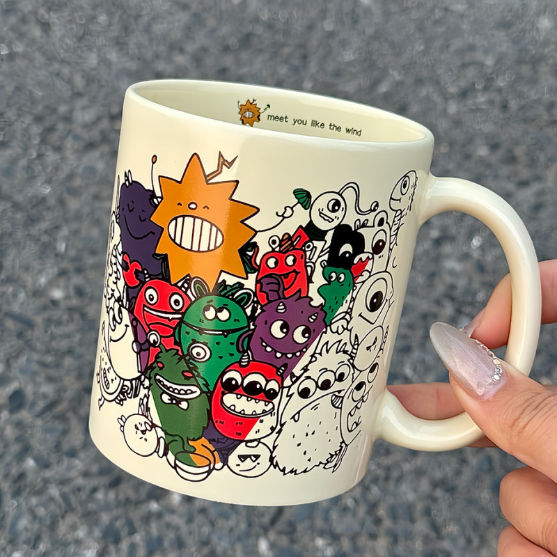 落書きセラミック セラミックカップ 蓋とスプーン付き マグカップ 高価値ウォーターカップ コーヒーカップ 誕生日メーカー