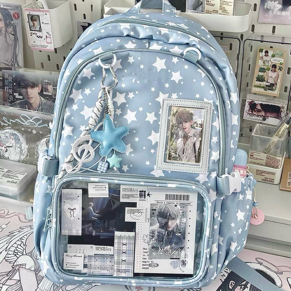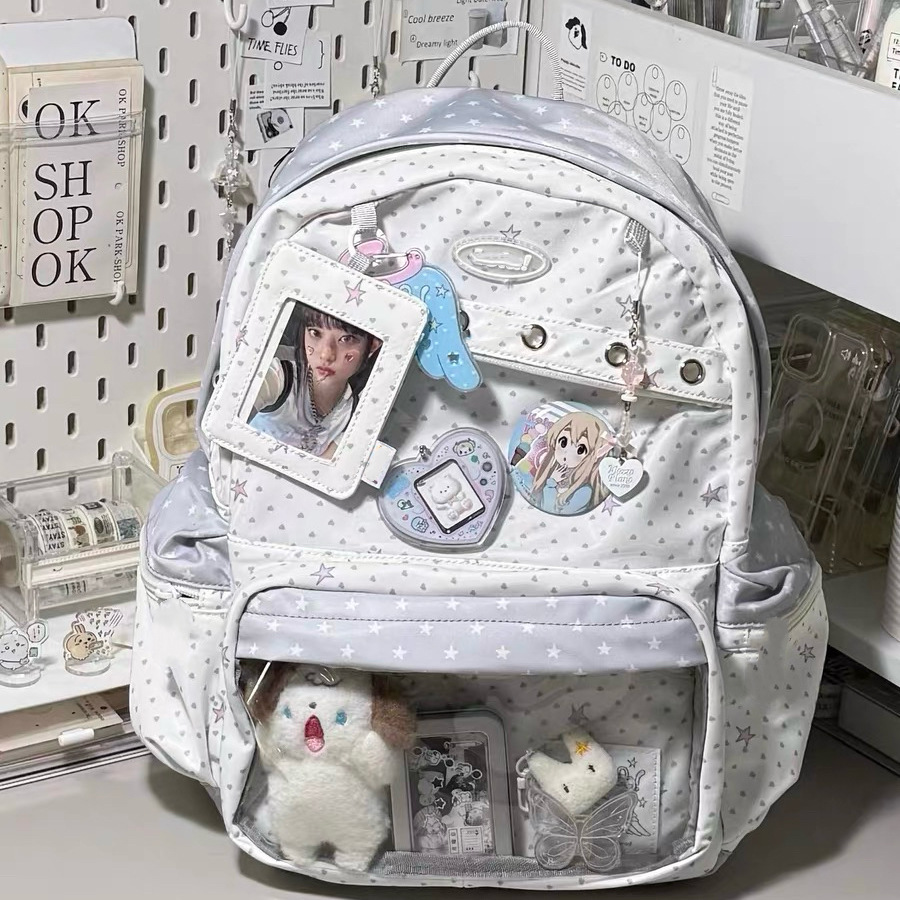 波点初中双肩包女生学生大容量二次元双肩透明吧唧痛包背包书包