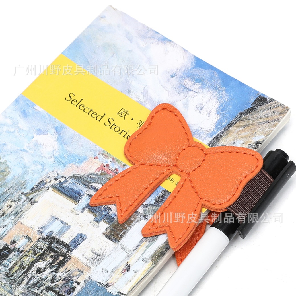 跨境热销精致感PU皮革蝴蝶结磁吸书签小清新纯色皮革阅读分页书夹