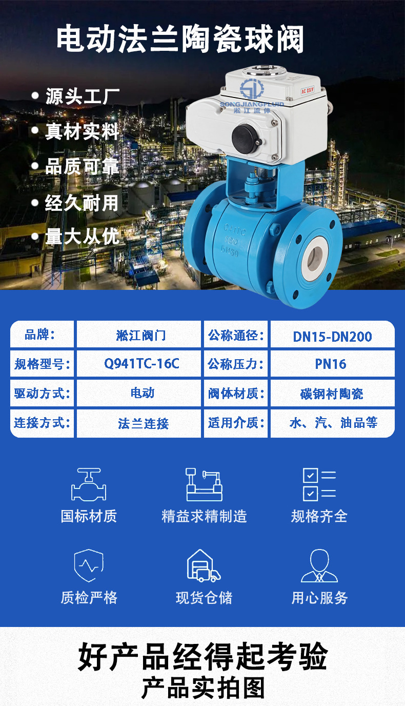 電気セラミックボールバルブ Q941TC-16C 完全裏地セラミック高温石灰粉塵耐摩耗性自動遮断バルブ