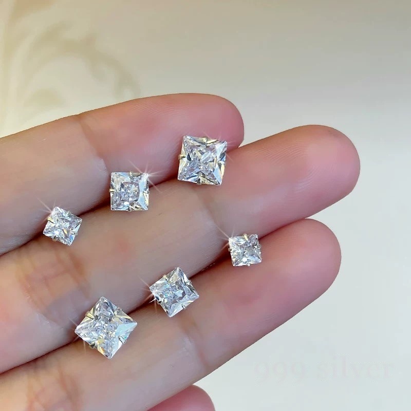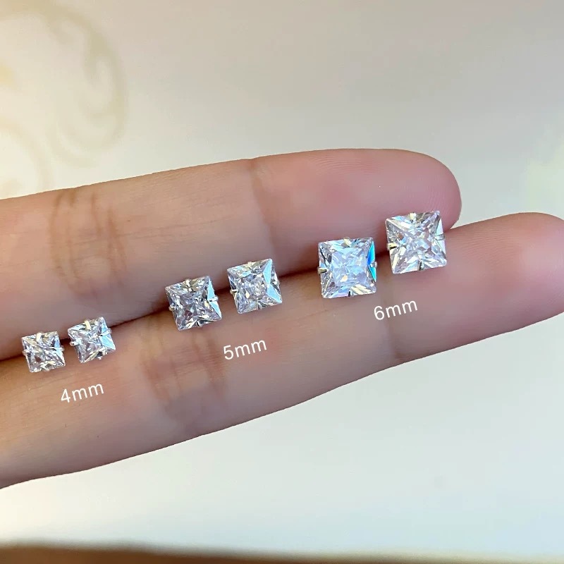 S925シルバーニードルピアス 2025年新作 ダイヤモンド スクエアカット シンプル 小ぶり 男女兼用 キラキラピアス 耳飾り イヤリング