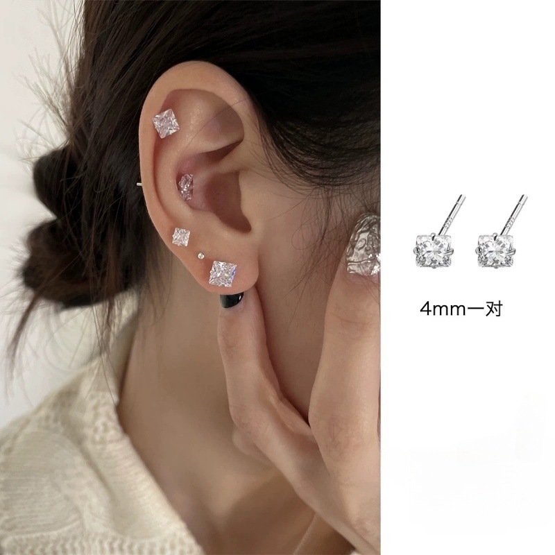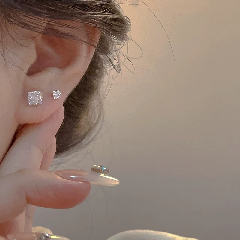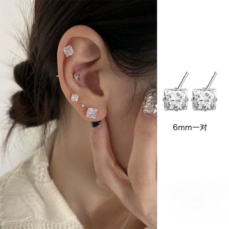 S925銀針方糖ジルコンピアス女性の精緻なミニモデルの軽豪華な高級感養耳穴イヤリング