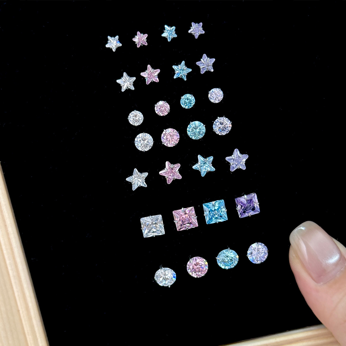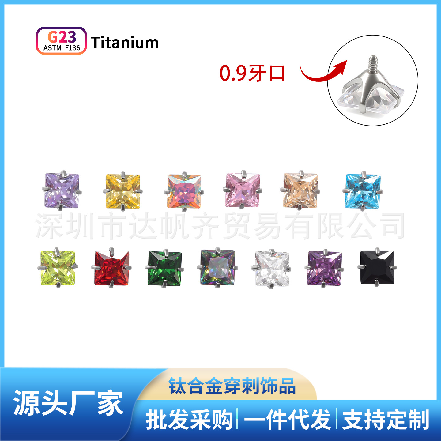 F136钛合金四爪镶方糖多色锆石耳钉耳骨钉跨境新款穿刺饰品替换头