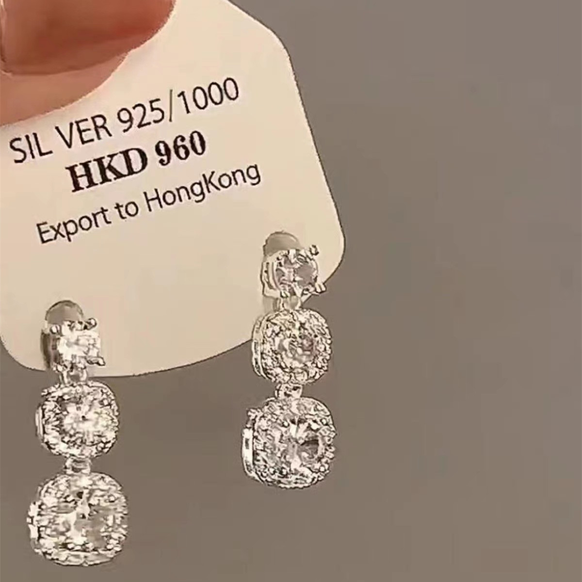 フランス風気質ジルコンピアス女性香港風宴会超キラキラ贅沢微嵌め込みドリルイヤリングS925銀針