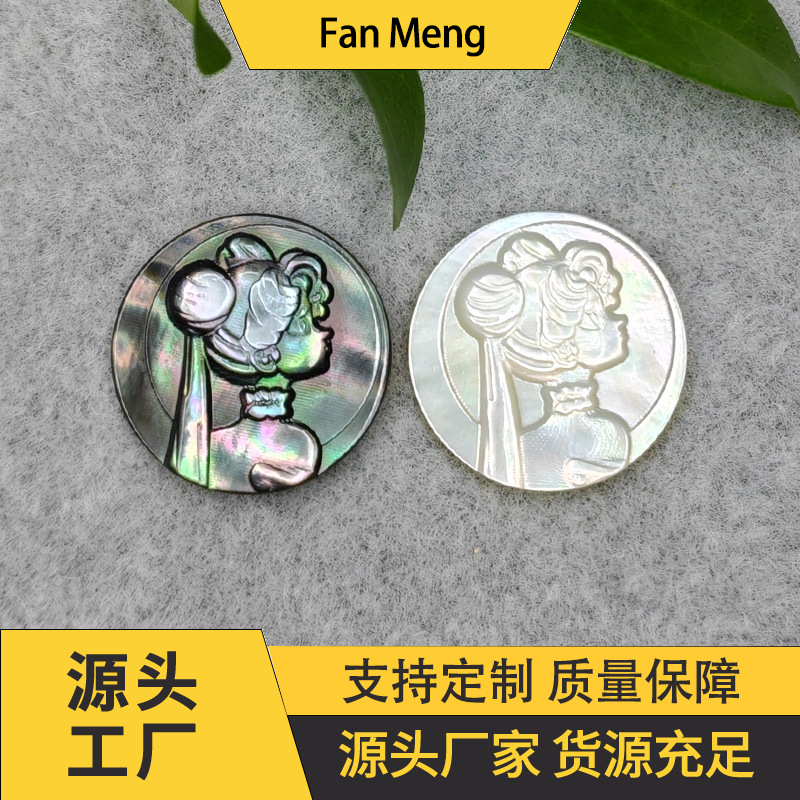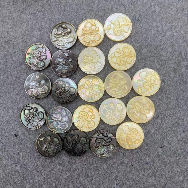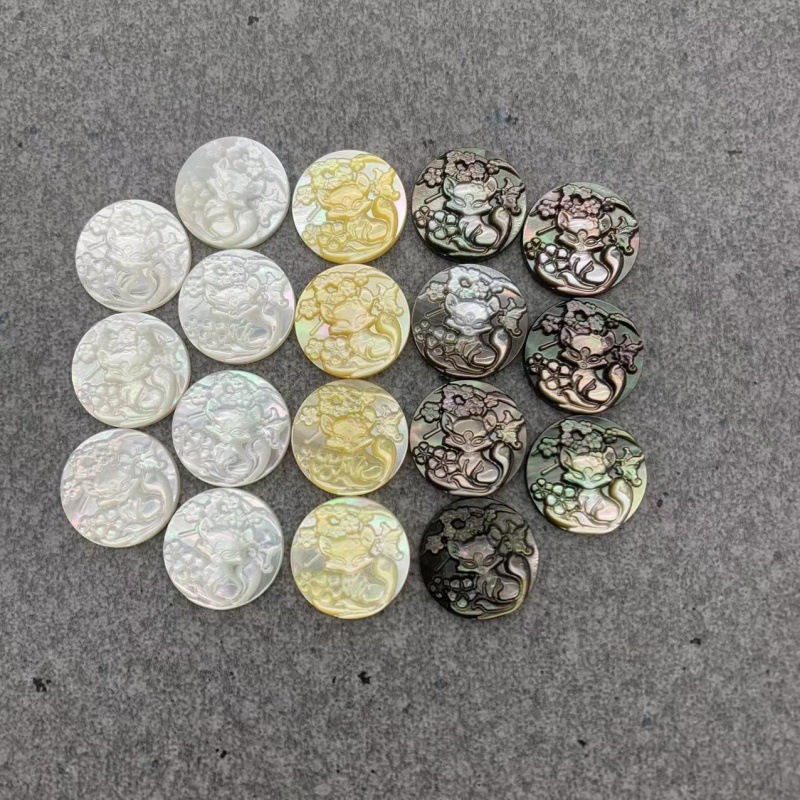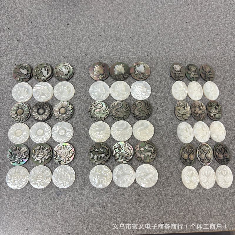 天然黒蝶貝と白蝶貝の彫刻 20MM ラウンドプレート アンティーク DIY ヘアピン アクセサリー 素材タグ (さまざまなスタイルあり)