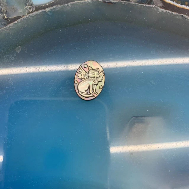ピンク貝彫刻猫頭黒蝶貝横穴小猫頭diy髪飾りイヤリング材料