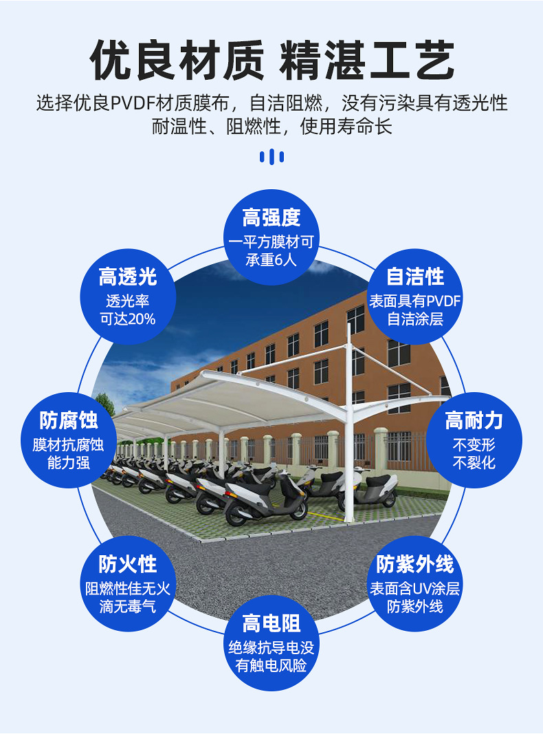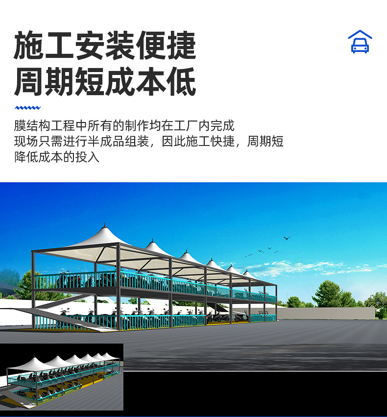自動車棚新エネルギー光伏駐車棚メーカー鋼膜構造車棚太陽光板鋼架大型車棚