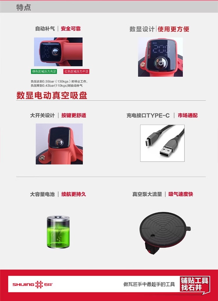 # ll 真空電動吸盤自動給気タイルガラス床タイル大型ボードヘビーデューティーフィクサー吸引と持ち上げ