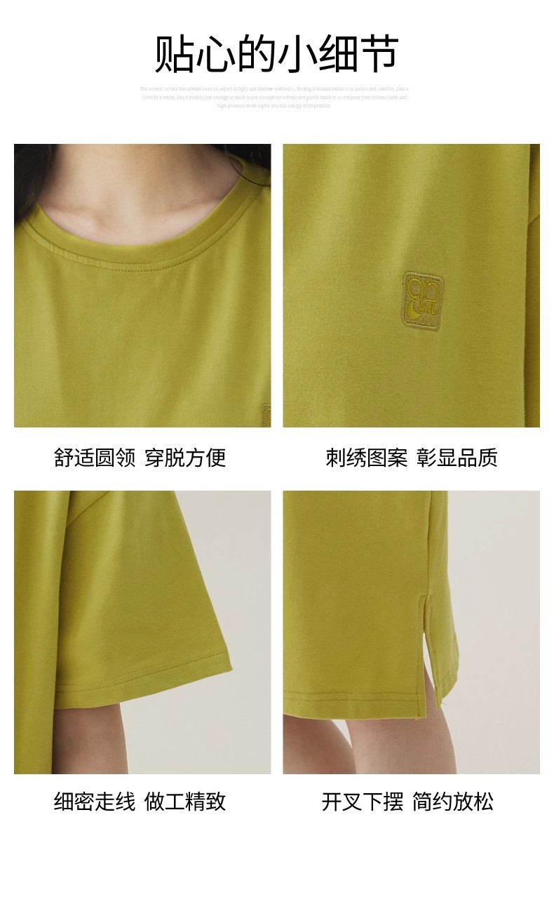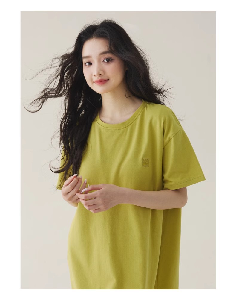 秋香るグリーンのラウンドネック半袖,ラベンダーパープルのラウンドネック半袖,ピンクのラウンドネック半袖,アクアブルーのラウンドネック半袖,グースイエローのラウンドネック半袖