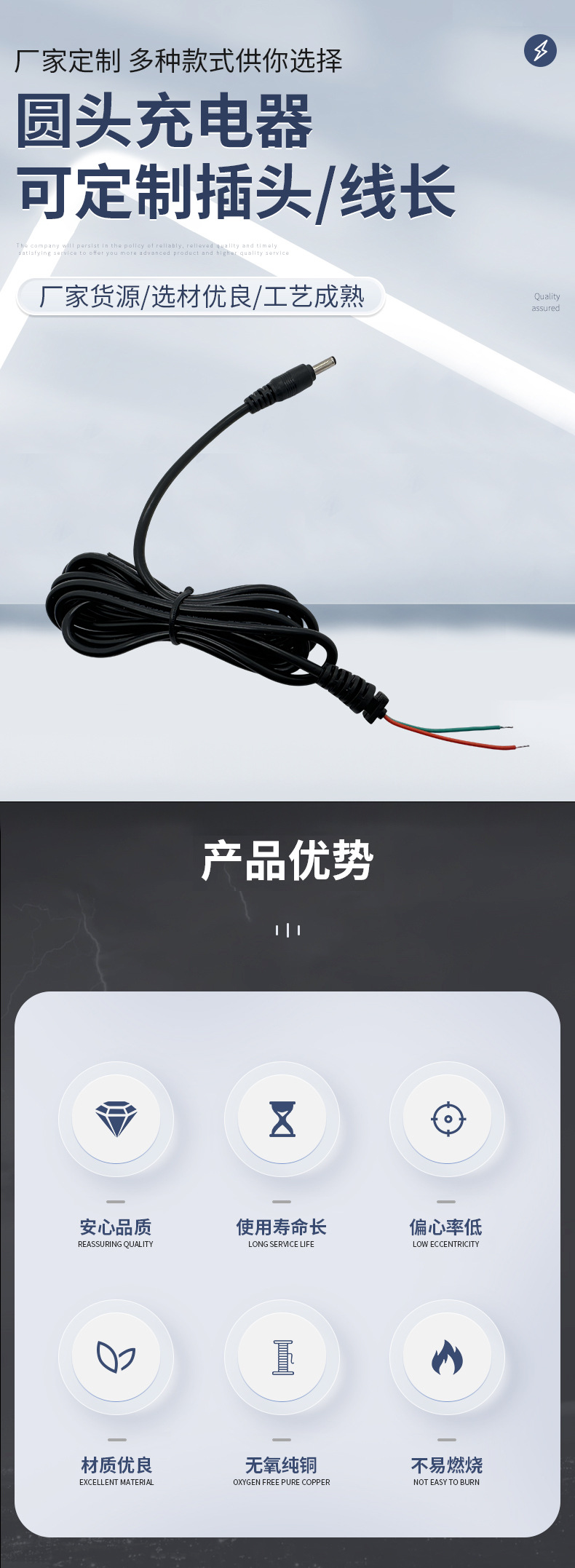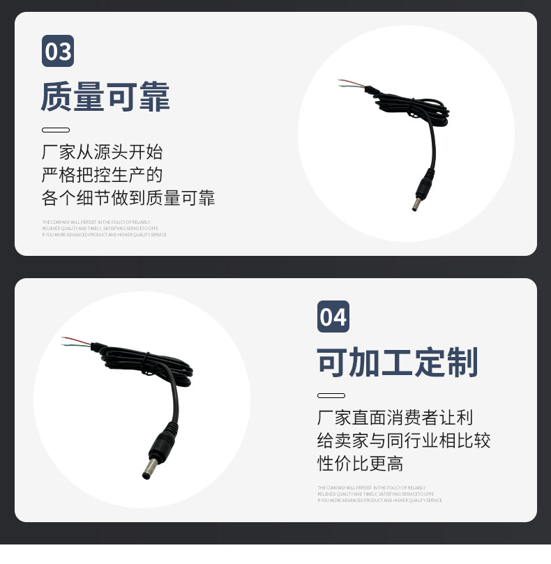 メーカー卸売 DC 電源ケーブル PVC 難燃性材料マルチ仕様電源コード無酸素銅コア電子線