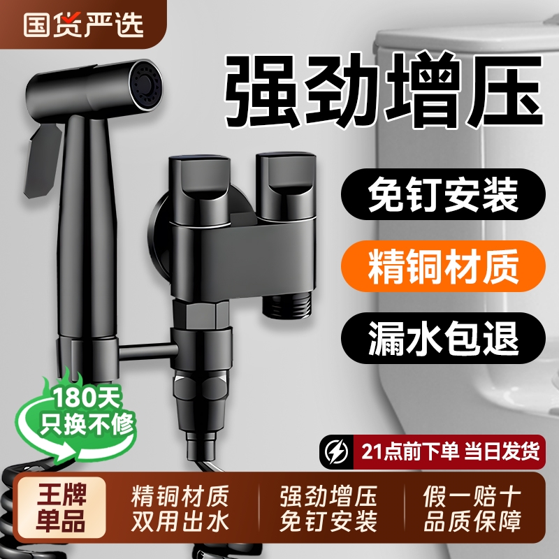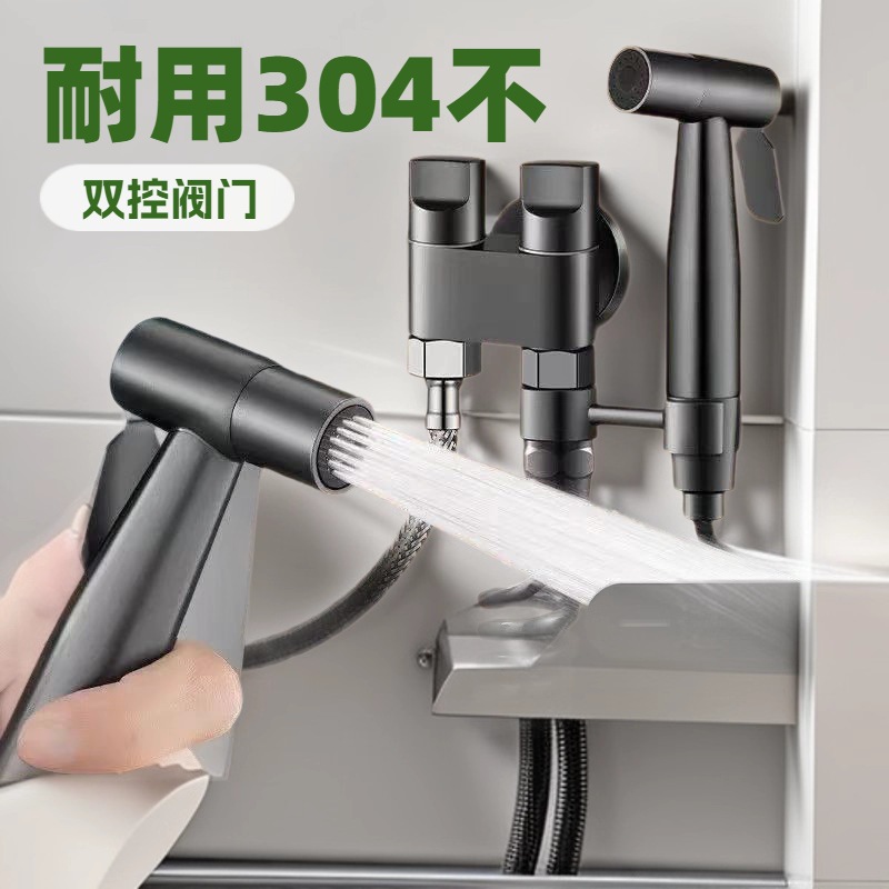 跨境马桶伴侣喷枪一进二出角阀带高压冲洗喷枪厕所卫生间增压出水