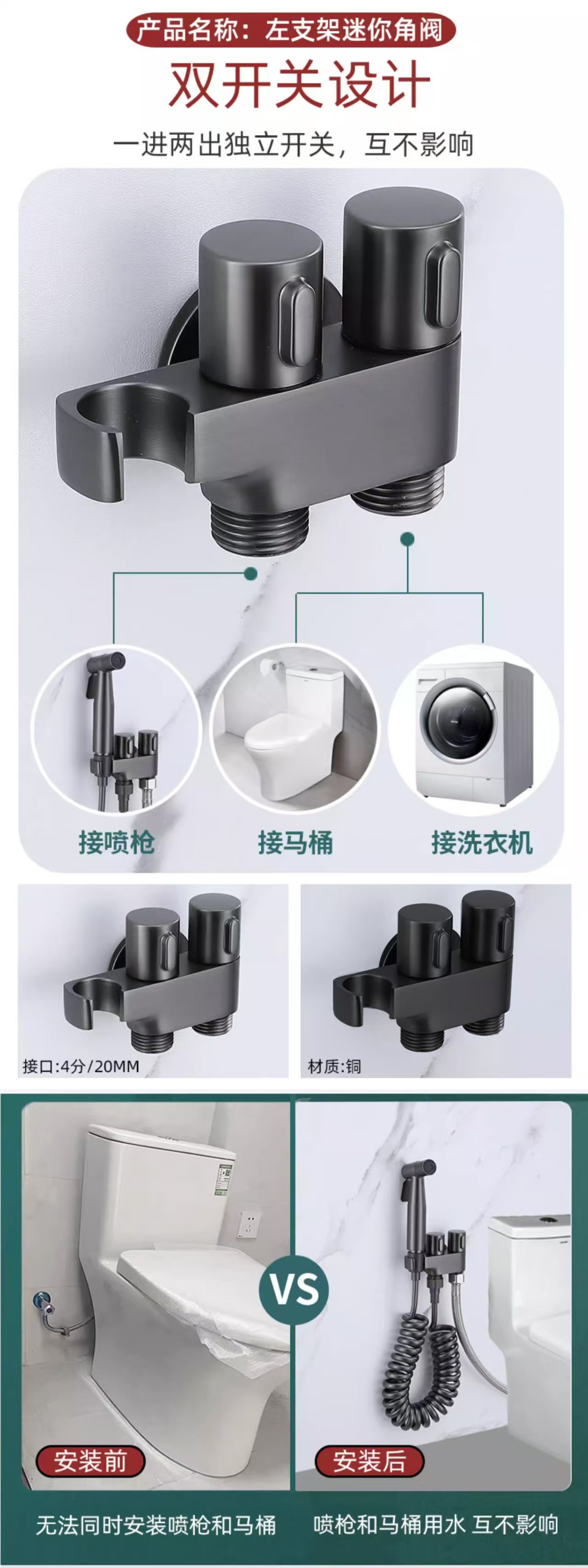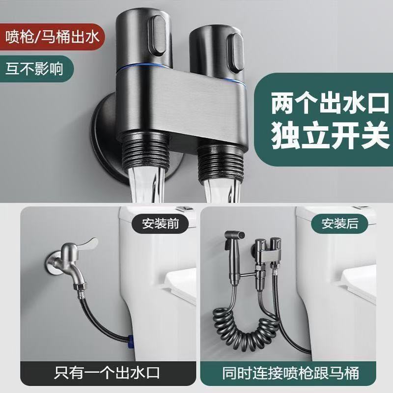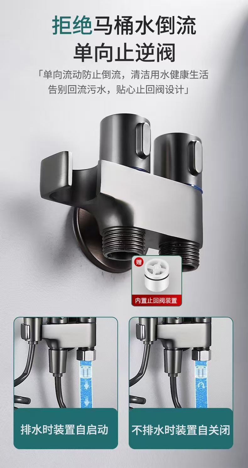 马桶伴侣喷枪冲洗一进二出双控角阀止逆阀防反水三通龙头分水阀