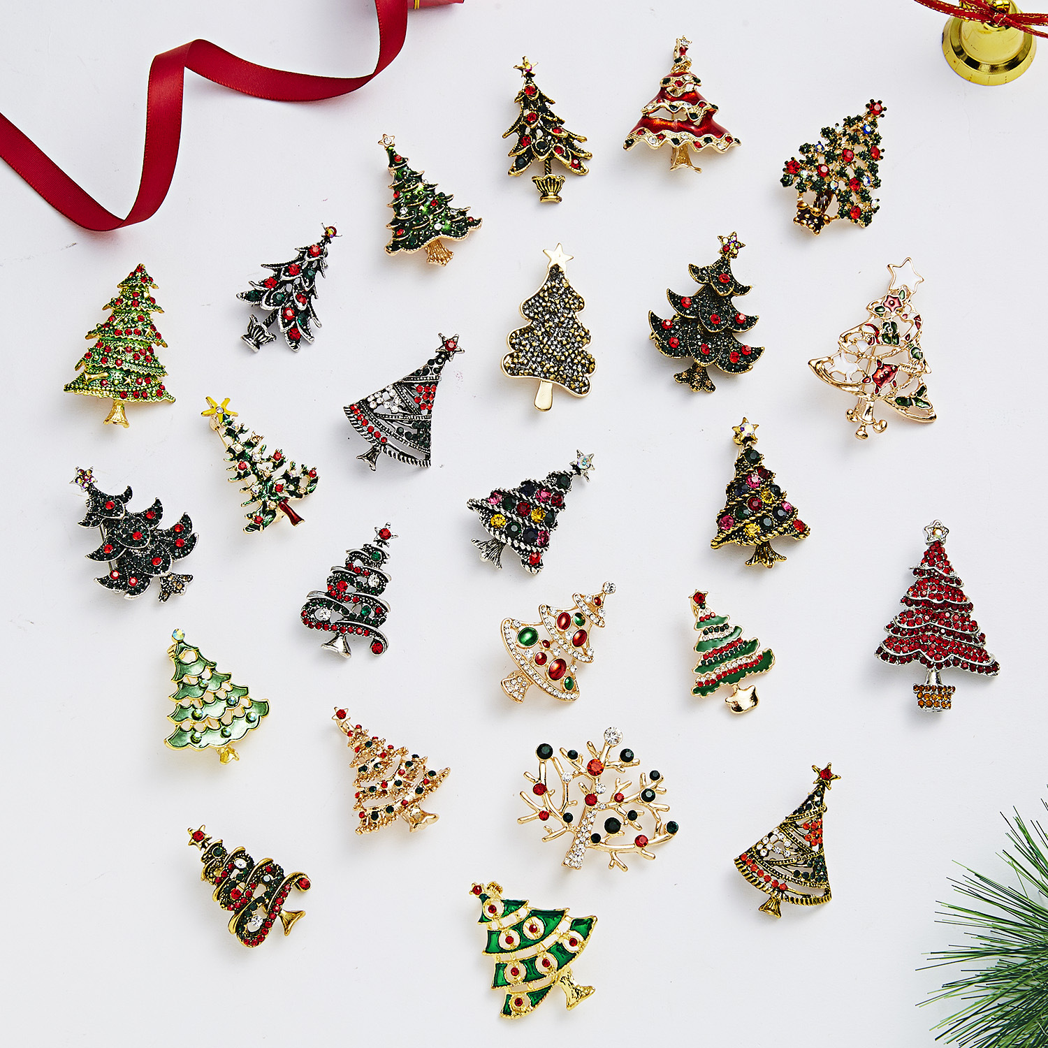 メーカー直販クリスマスツリーシリーズ統合ファッションクリスマスツリー水ドリル画油クリスマスブローチ百合胸飾り卸売り