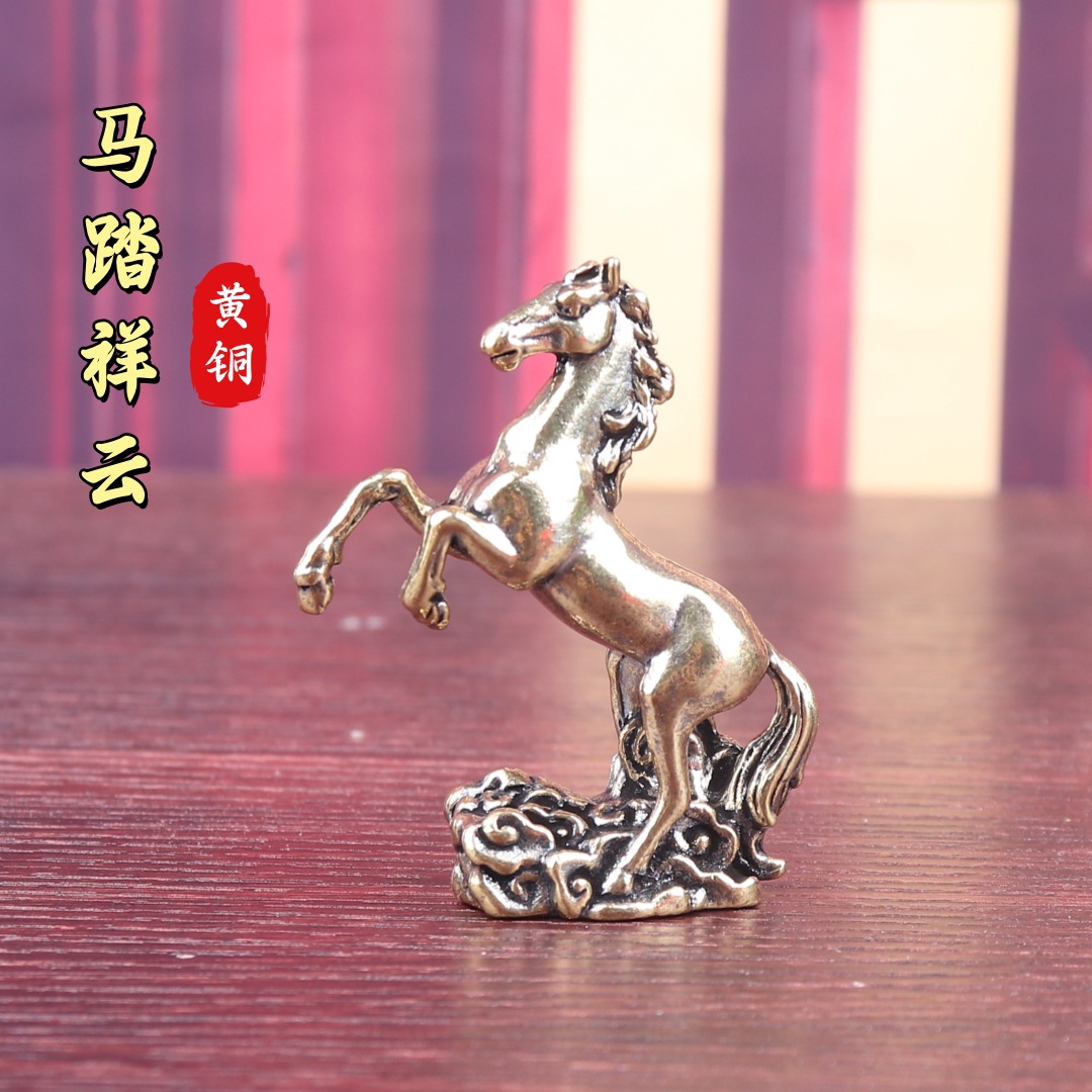 真鍮祥雲ベーススタンド馬戦馬干支レトロソリッドホームデコレーションデスクトップティーペット工芸品装飾品