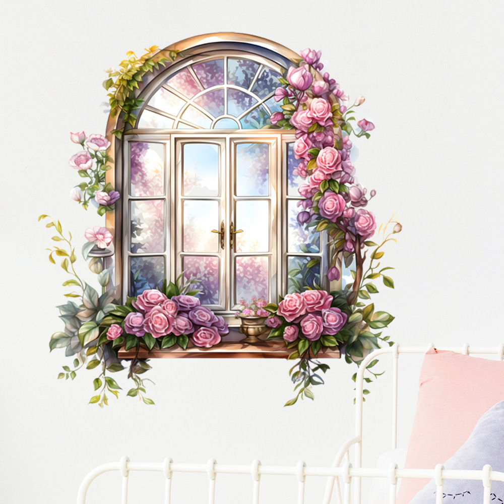 ロマンチックな花藤シミュレーション窓家庭寝室客間背景壁装飾壁貼り自己接着除去シール