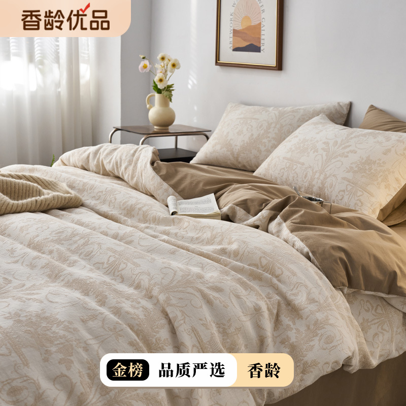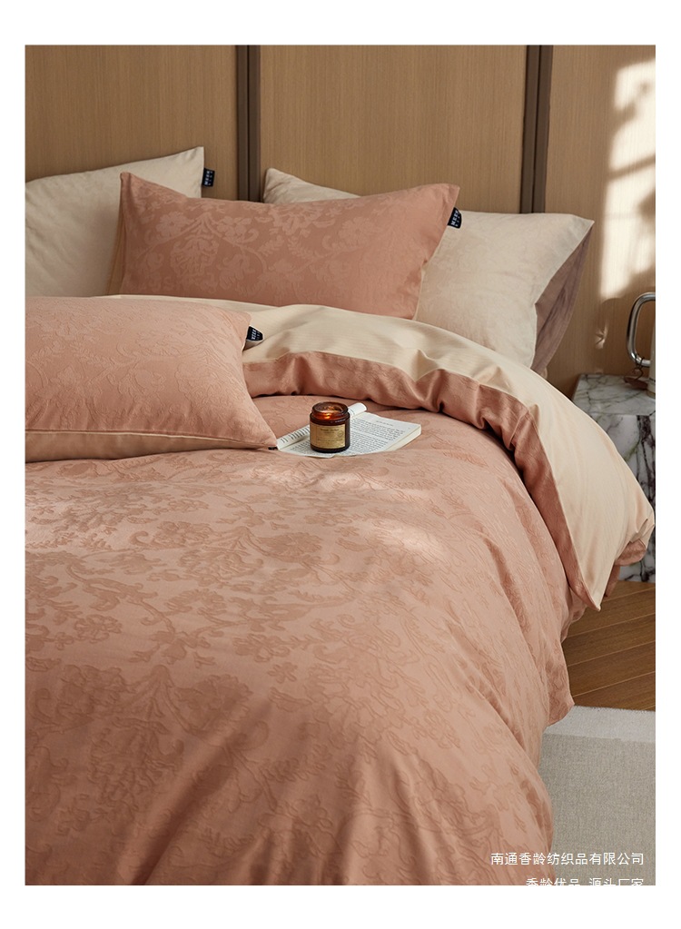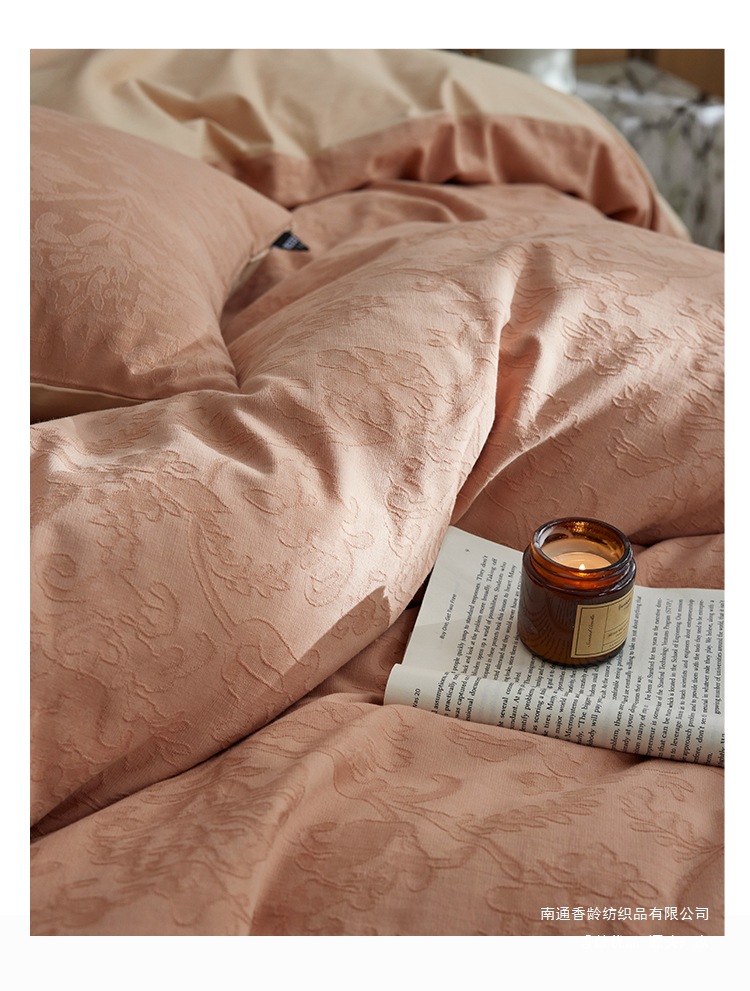 軽豪華レトロ100本全綿磨毛ベッド4点セット厚手色織ジャカード布団シーツ春夏用品4点セット
