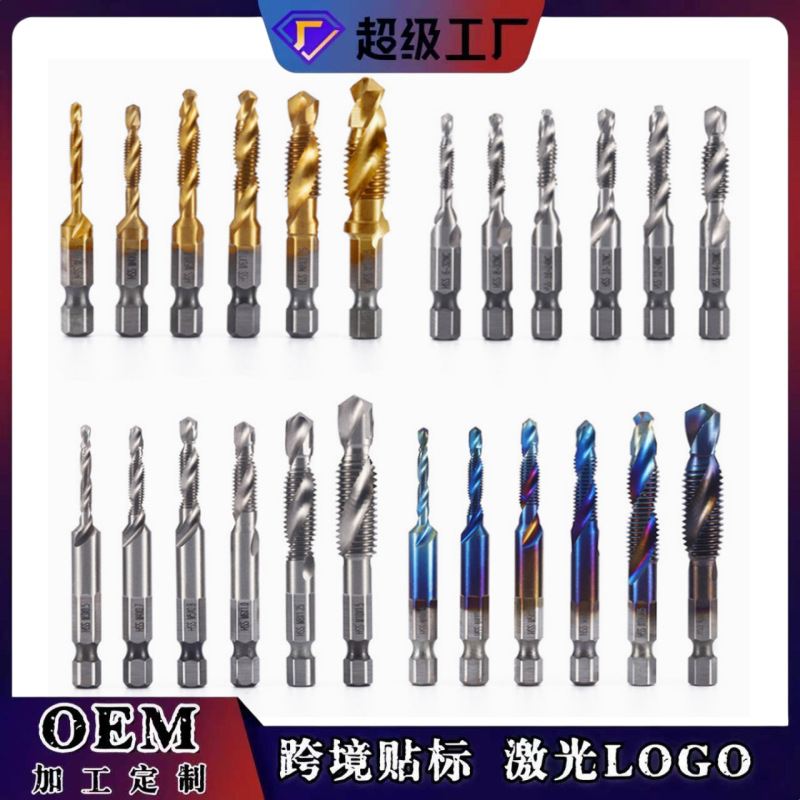 クロスボーダー6pc高速鋼複合タップ掘削一体タップチタン機用穴あけタッピング面取りタップ