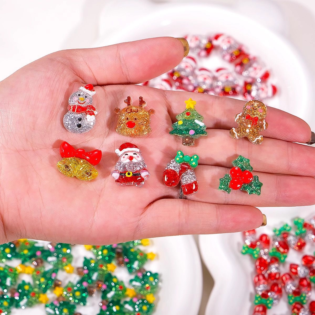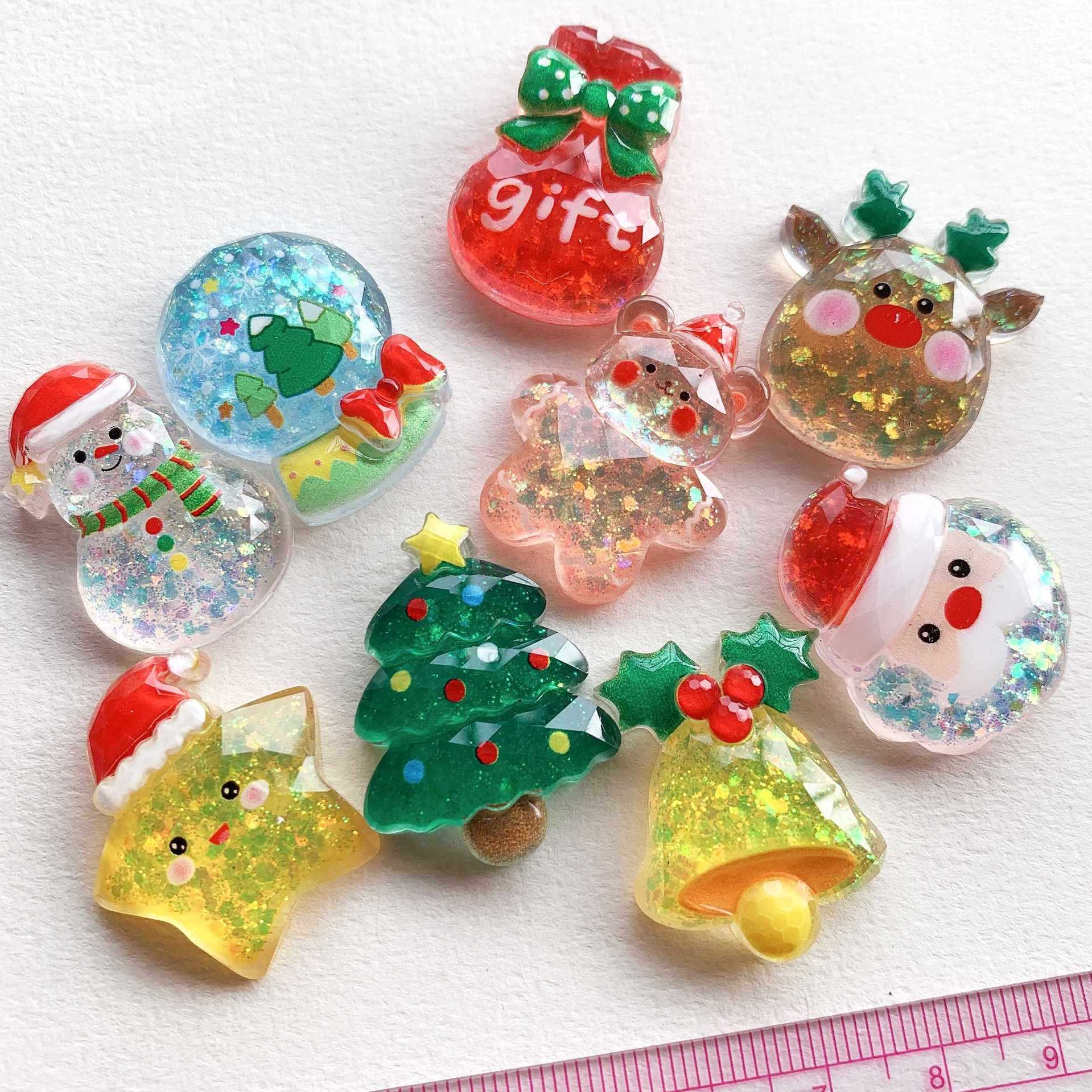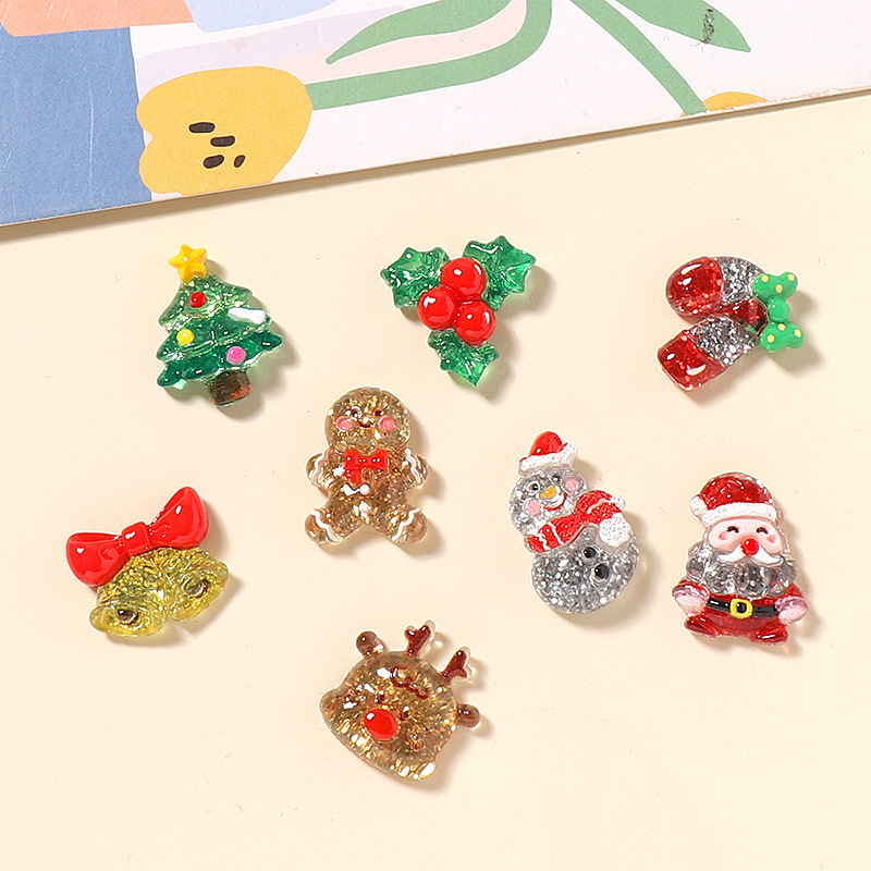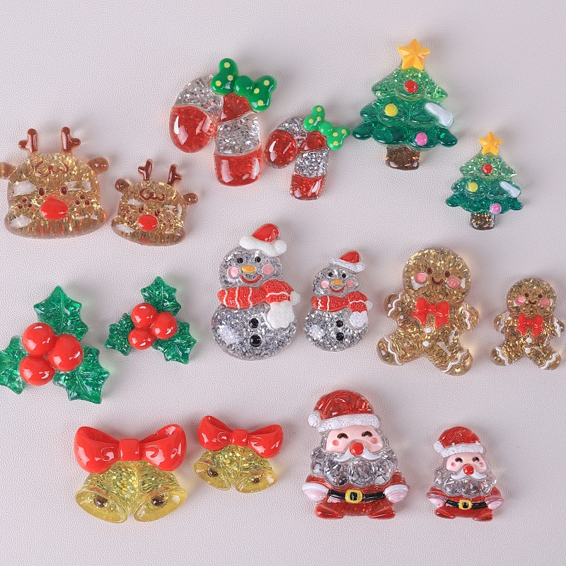 树脂配件批发童趣diy奶油胶发夹洞洞鞋扣饰品装饰卡通闪晶晶圣诞