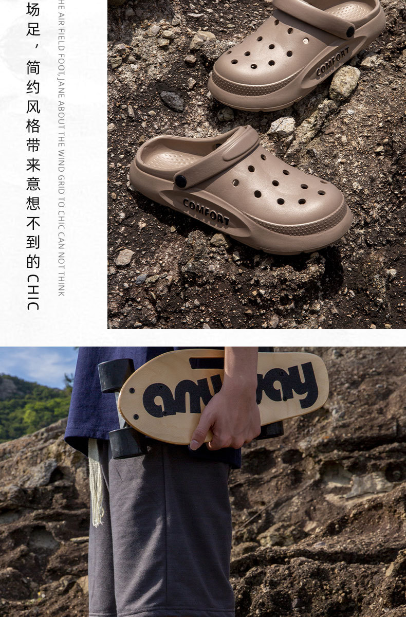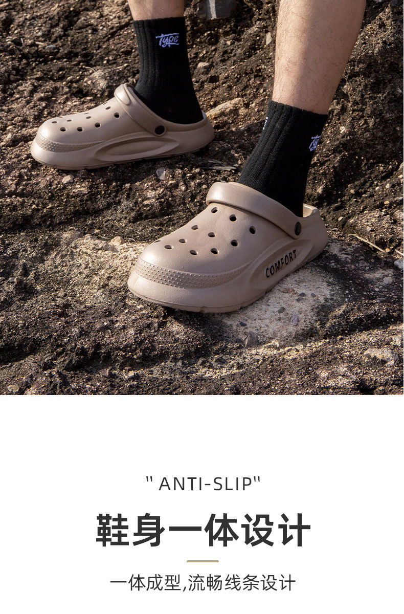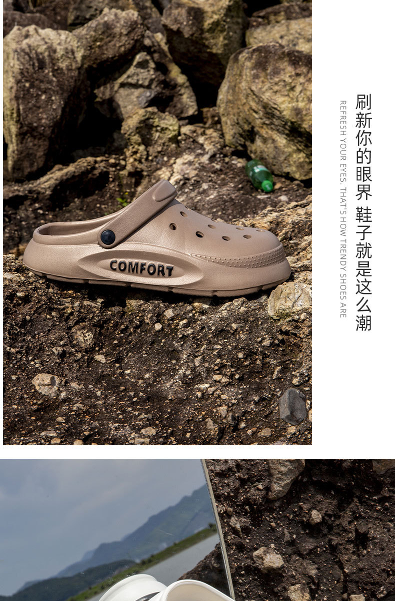 女性が男性の夏用滑り止めサンダルを履く、夏用の新しい包頭2024穴感覚2