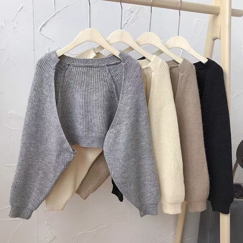 韓国スタイルのハイエンド怠惰なスタイルのセーターショール女性のための春と秋のシンプルな無地ランタンスリーブショートスタイルアウターカーディガン