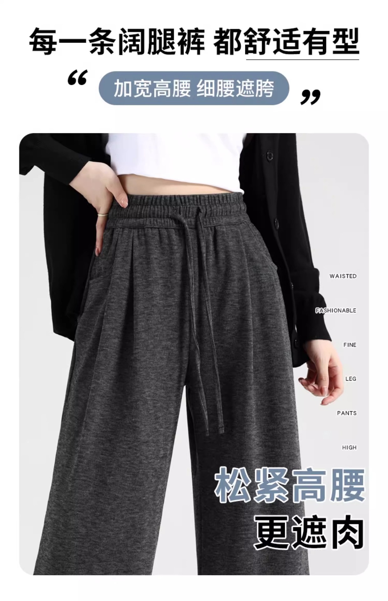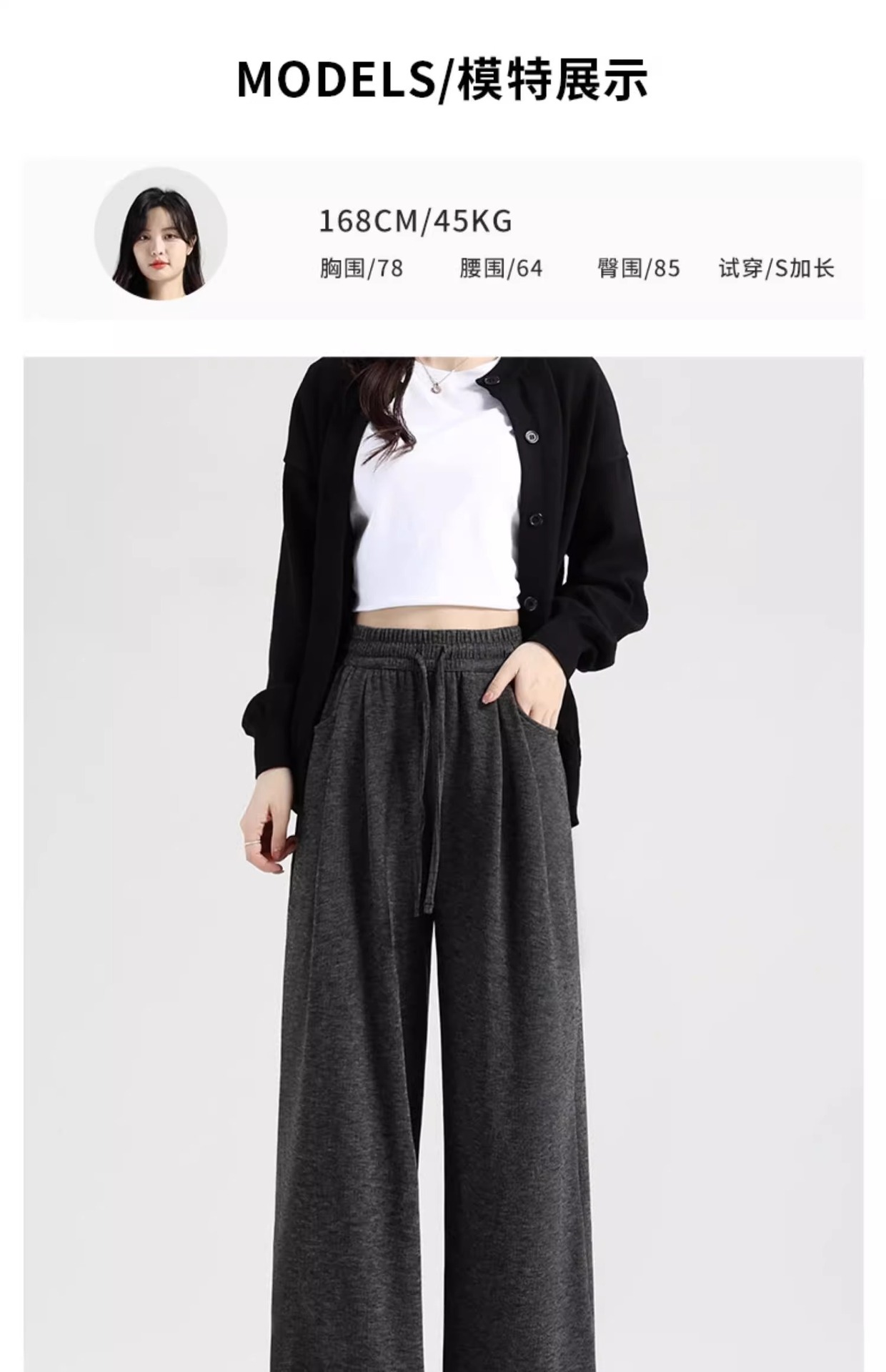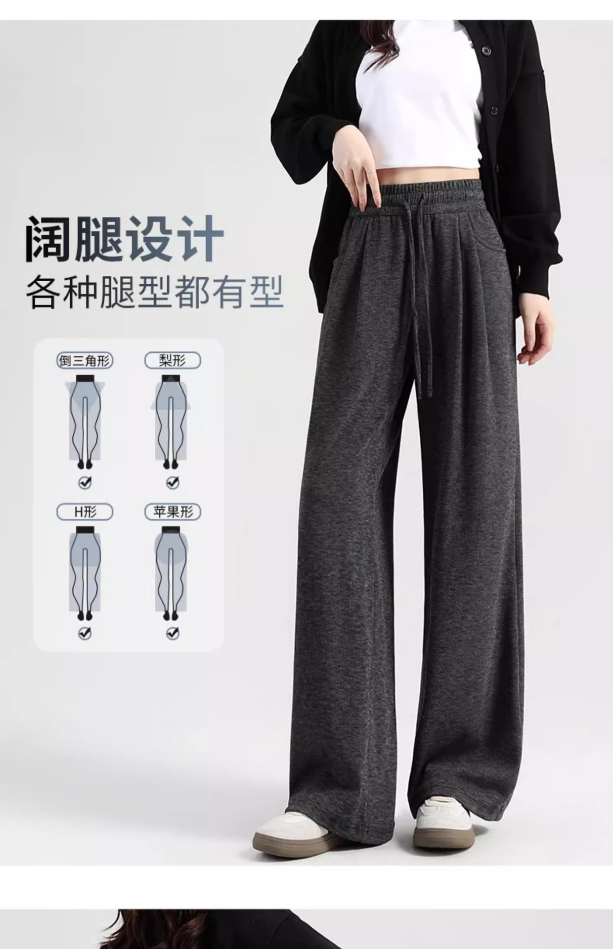 绵羊绒春秋冬软糯舒适糯米裤窄版直筒垂感阔腿裤女款慵懒风卫裤