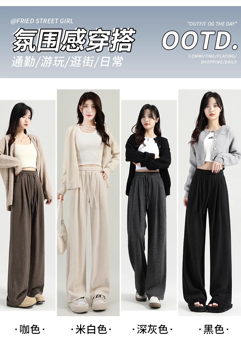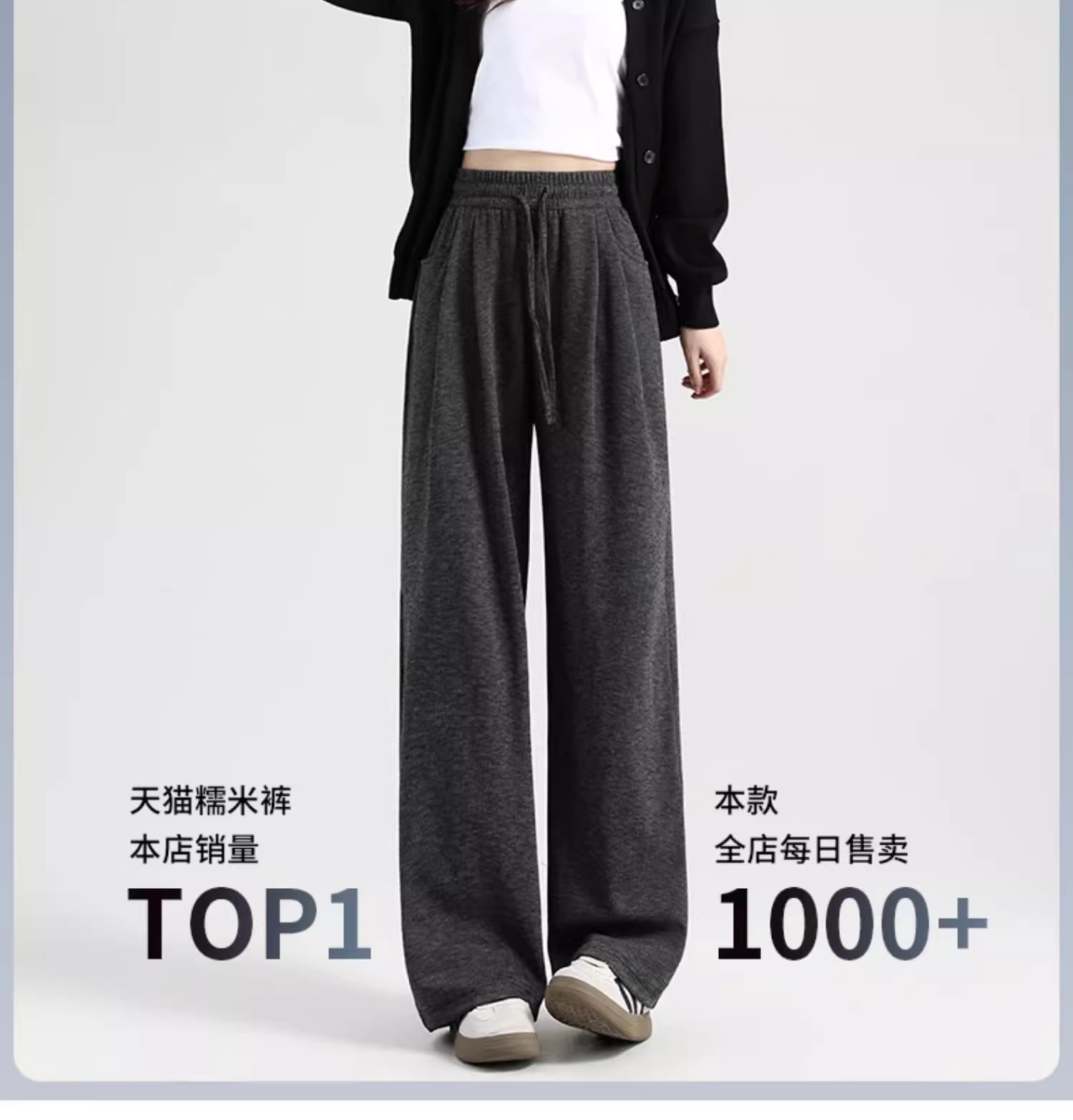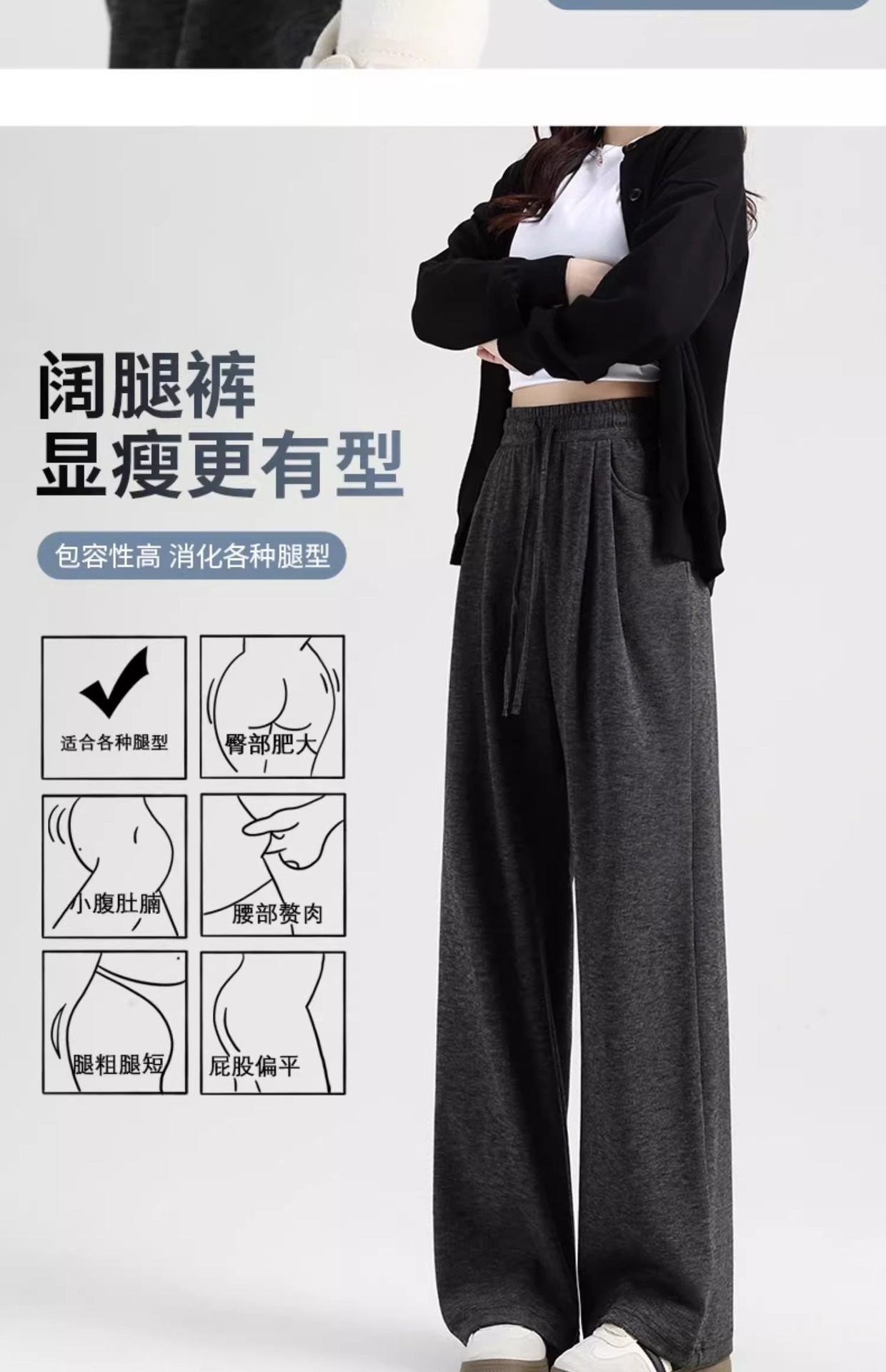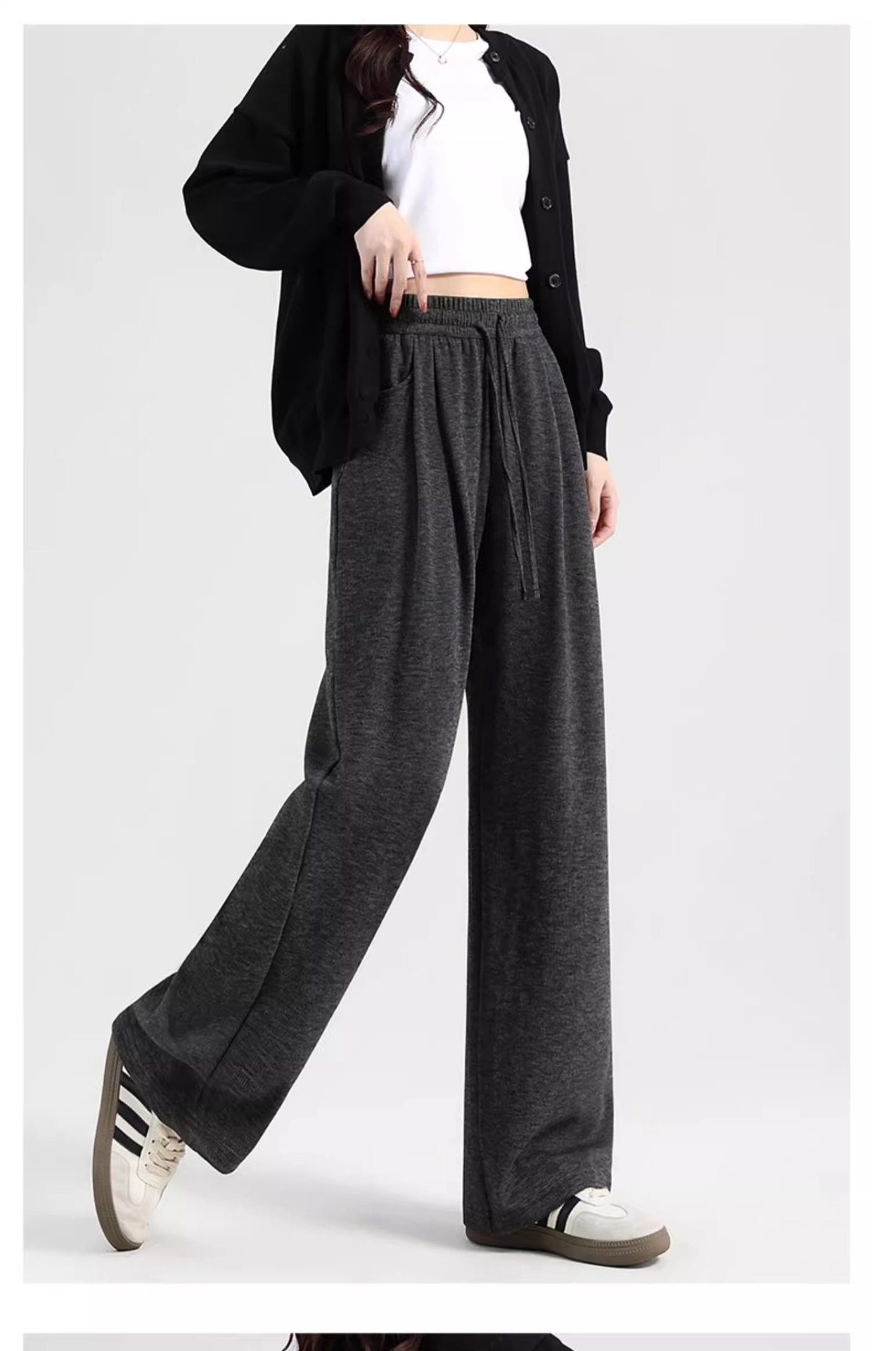 绵羊绒春秋冬软糯舒适糯米裤窄版直筒垂感阔腿裤女款慵懒风卫裤