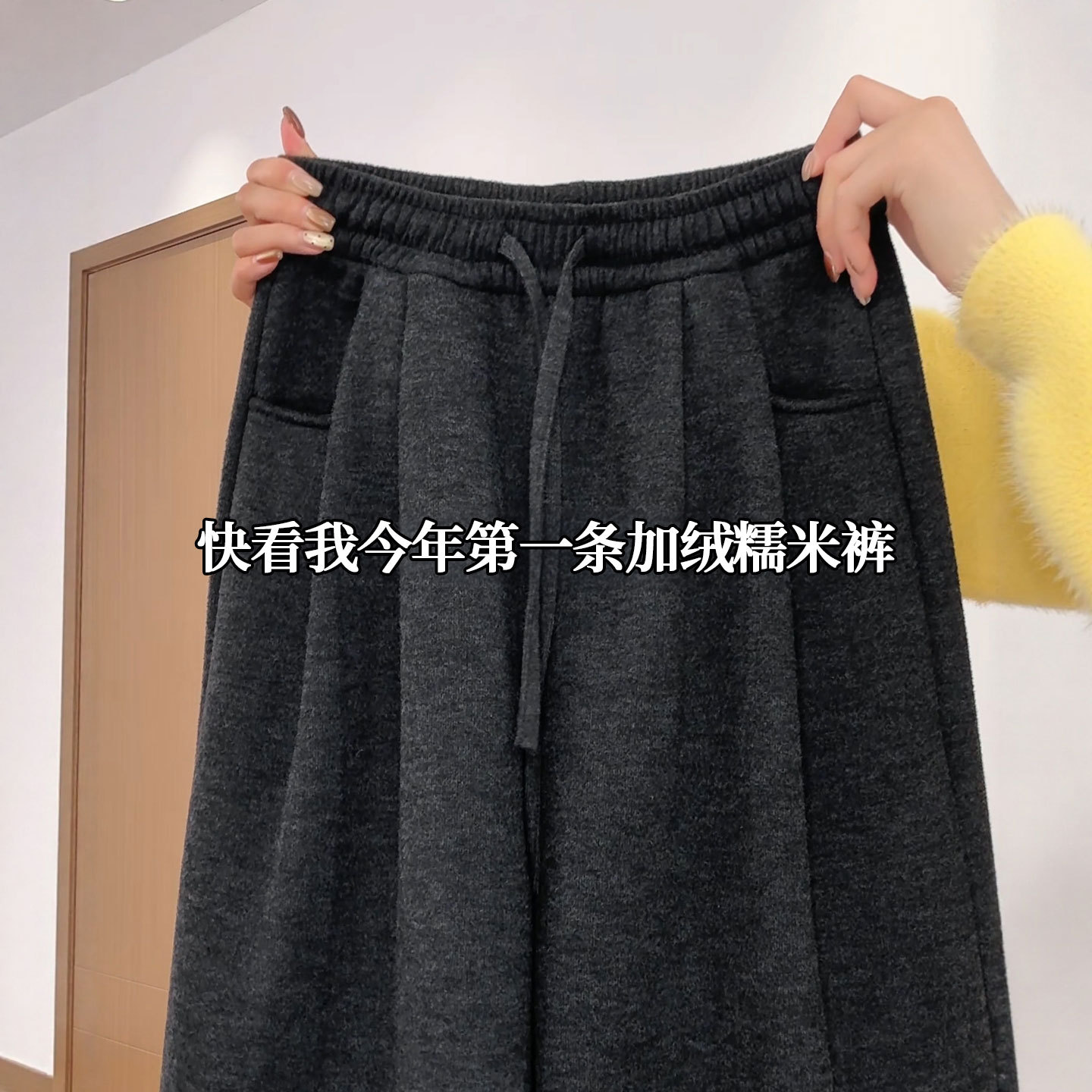 加绒加厚糯米裤女2026新款秋冬季高腰垂感小个子韩系慵懒阔腿裤子