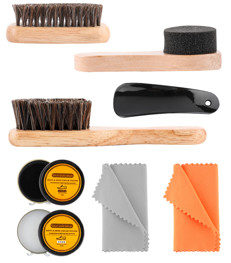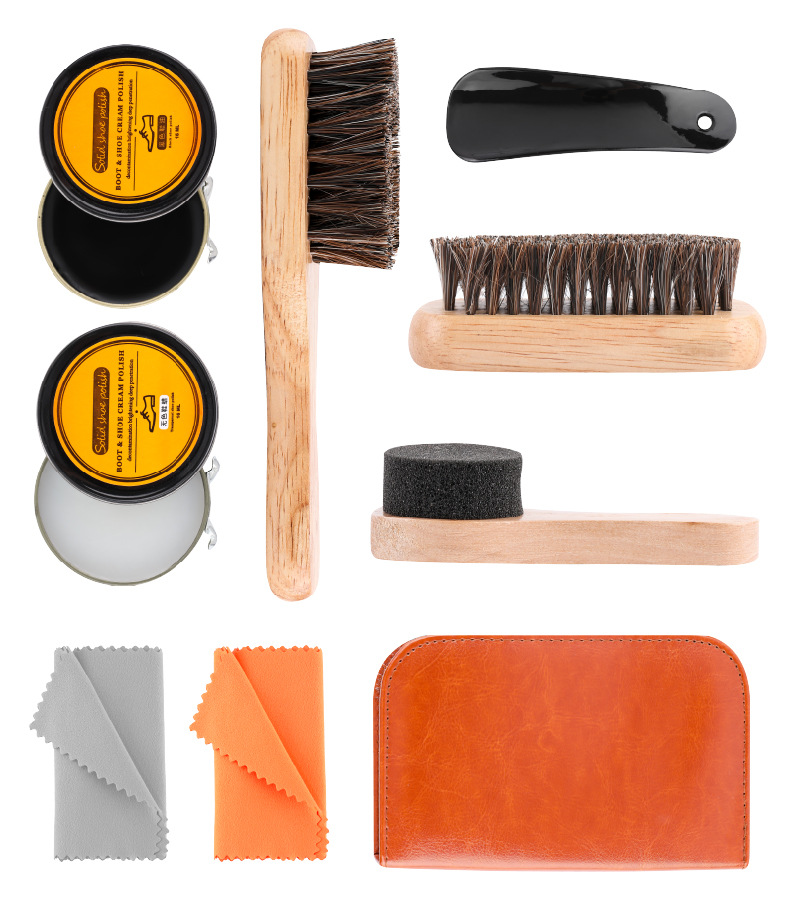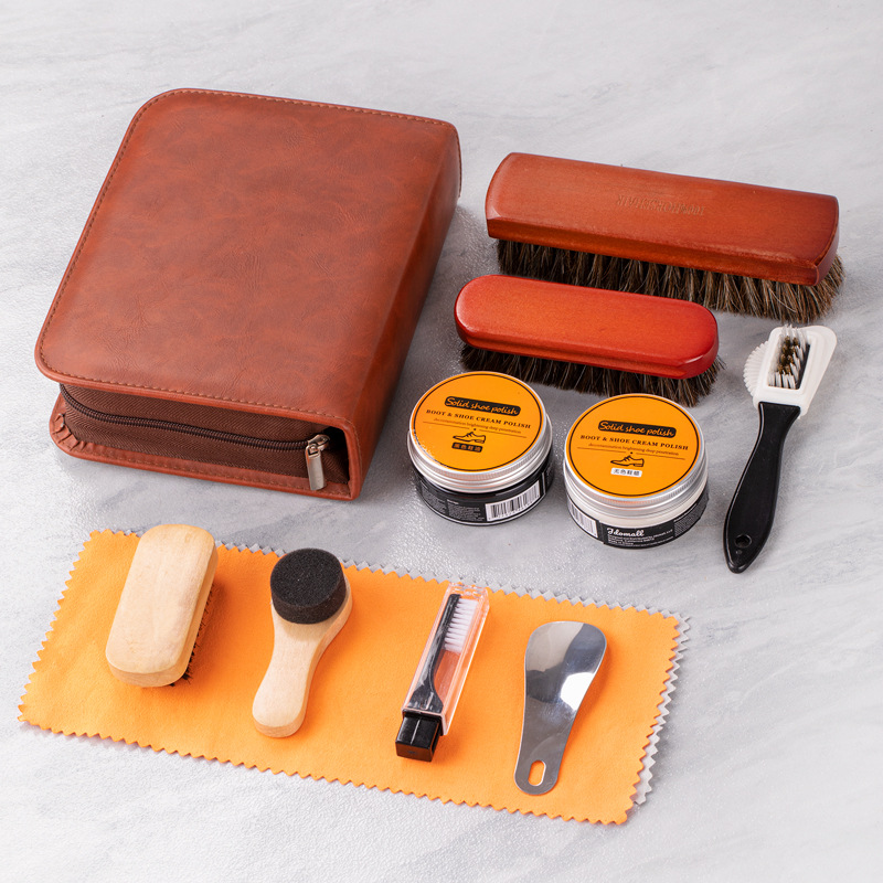 【少額卸売り】馬毛ブラシ靴油セット9点11点セット靴磨きブラシ真皮ケアセット